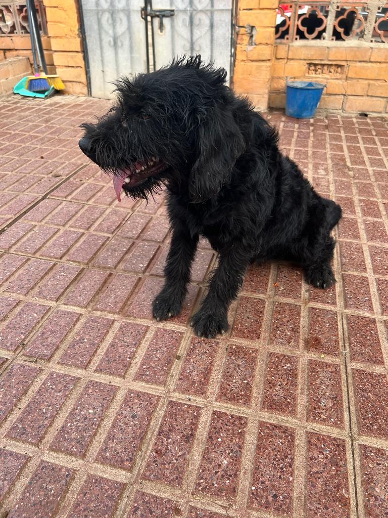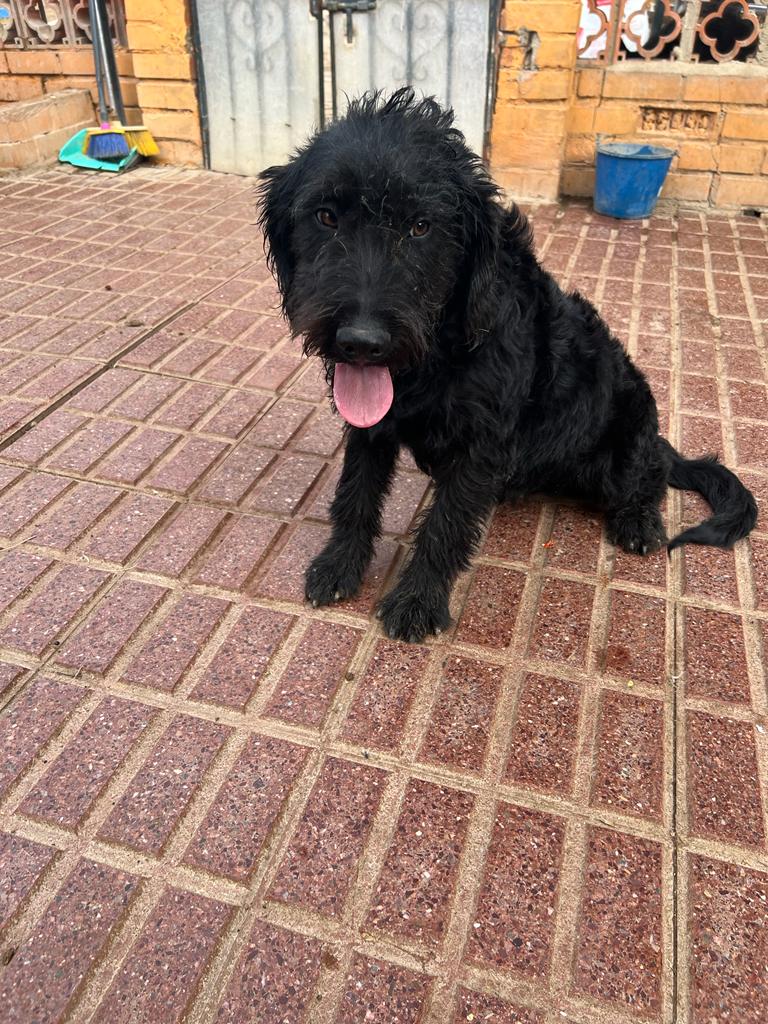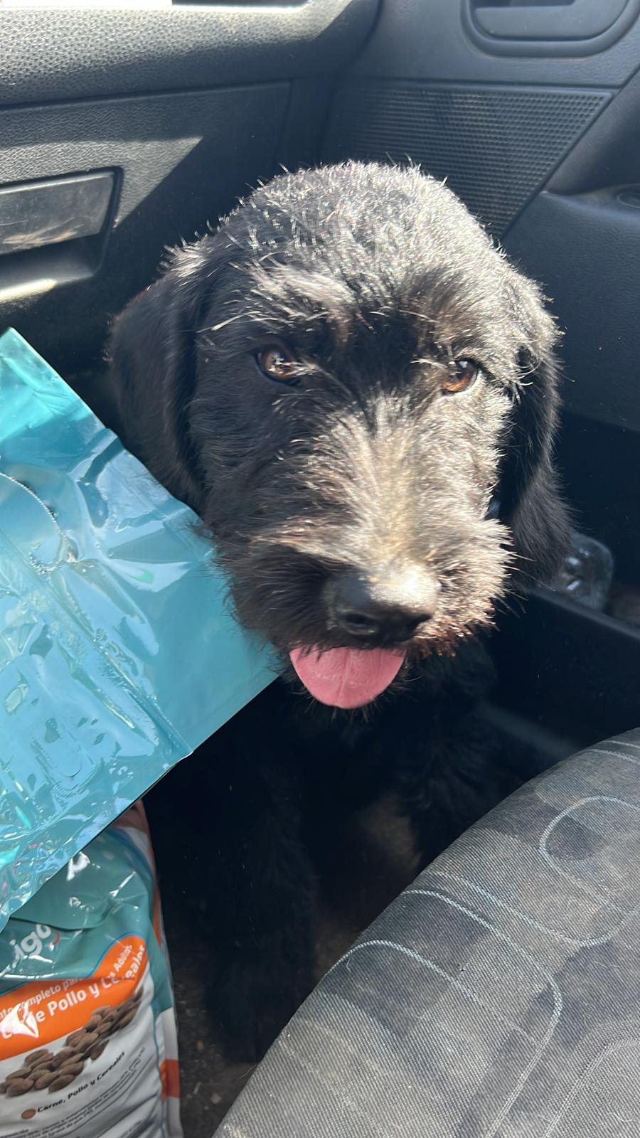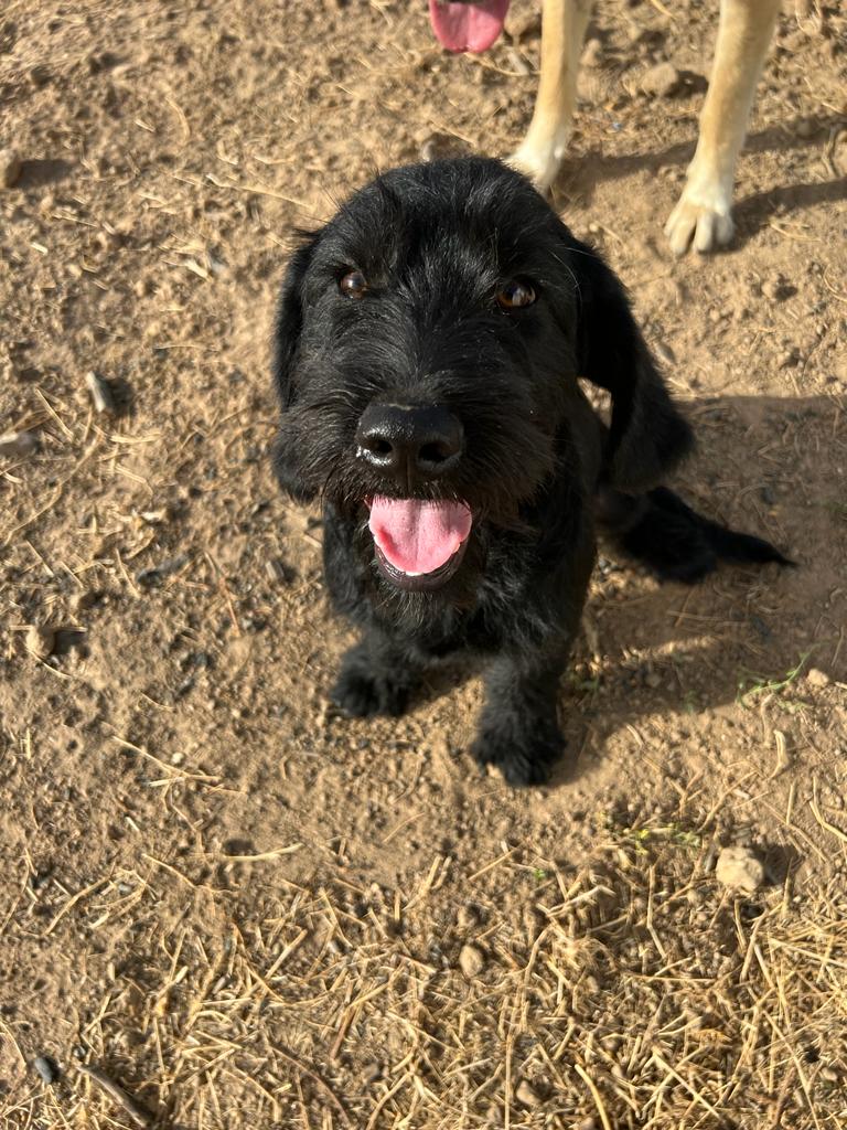 Unser kleines Kohlestückchen Orson marschierte im August 2022 auf eine Finca in der Nähe von Huelva und fragte dort bestechend höflich nach Essen, Wasser und Zuneigung. Zu dieser Zeit war der lustige Lockenkopf gerade 8 Wochen alt und die Besitzer der Finca waren sicher, dass bald jemand nach Orson fragen würde. Aber niemand kam, keine Mutter, keine verzweifelten Halter, keine Geschwister – und so informierten die Tierfreunde unsere Partner von Dolmen Animal.