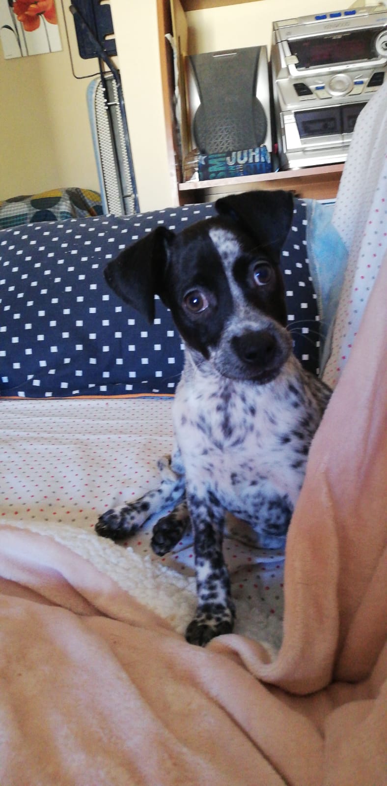Pecas – das heißt « Sommersprossen », und man muss nicht lang überlegen, warum unsere kleine Pünktchenfee diesen schönen Namen trägt.Pecas ist Teil eines ungeplanten Wurfes. Wie immer wurde die Hündin vollkommen überraschend läufig und natürlich konnte man auch nichts tun, um die Rüden fernzuhalten. Selbstverständlich dachte man auch nie an eine Kastration (und da mache ich den Haltern der Hündin nicht mehr Vorwürfe als denen des Rüden – würde jeder seinen Teil beitragen, hätten wir viel weniger traurige Seelen in den Perreras, die auf ihren letzten Gang warten), und so kamen Pecas und ihre Geschwister also im Spätsommer 2019 auf die Welt. Zum Glück hatten die Halter ihrer Mama zumindest so viel Herz, dass sie alle Welpen behielten und sie auch erst nach einigermaßen angebrachter Zeit von der Mutter trennten. Die Welpen wurden, wie in Südeuropa leider oft üblich, ohne Impfung und Kennzeichnung verschenkt, einen Schutzvertrag gab es natürlich auch nicht. Pecas fand mit 10 Wochen also zwar eine Familie, aber diese wollte den ach so niedlichen Babyhund schon nach ein paar Tagen wieder loshaben – und Pecas landete im Garten einer Pflegeeinrichtung. Dort wurde sie vorübergehend von einer Freiwilligen mit Futter und Wasser versorgt, aber die Tage werden kürzen, die Nächte kälter und Pecas ist nach wie vor einfach nur ein Baby. Da das Tierheim für einen nicht geimpften Welpen fast zwangsläufig zur Todesgefahr wird, nahm eine nette Dame, die der ArcoNatura nahesteht, das kleine Mädchen mit nach Hause. Dort darf Pecas nun warten, bis sich ein richtiges Zuhause für sie gefunden hat.Pecas ist ein lustiges Pünktchen-Exemplar der Marke Terrier-Mix. Wir vermuten, dass sich in ihrer Ahnenreihe Bodeguero findet – wer die bezaubernden Sommersprossen beigesteuert hat, ist nicht ganz klar, und somit auch nicht, wie groß unsere Prinzessin mal werden will. Wir können aber garantieren, dass die niedliche Rennmaus kleiner bleibt als ein Bernhardiner und größer wird als ein Chihuahua (und vorsichtige Schätzungen lassen vermuten, dass Pecas eine elegante Hundedame in Kniehöhe wird). Was soll man groß über den Charakter eines Hundekinds mit noch nicht einmal drei Monaten Lebenserfahrung erzählen? Pecas ist ein Cuteness-Overload, sie ist welpentypisch verspielt und neugierig und will einfach nicht mehr als ein tolles Heim mit lieben, geduldigen Menschen (Pecas lässt anmerken, dass sie auch mehr als offen für andere Vierbeiner ist – ob Hund oder Katze, Hauptsache ist, dass der Mitbewohner lustig ist und zum Spielen aufgelegt!). Ob ihre neuen besten Freunde nun alt, jung, dick oder dünn sind, das ist dem kleinen Wonneproppen vollkommen egal – Pecas möchte nur viele fröhliche Jahre an der Seite ihrer eigenen Zweibeiner haben. Ein bescheidener Wunsch so kurz vor Weihnachten, den wir der witzigen Flitzpiepe doch sicher erfüllen können, oder?!