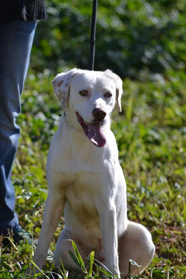 Nun ist der wundervolle schneeweiße Mischling mit den außergewöhnlichen Sommersprossen auf Ohren und Pfoten also in der Obhut unserer Freunde in Linares und auch im Tierheim zeigt er sich nur von seiner allerbesten Seite. Man merkt allerdings, dass ihm diese Welt der Gitter, Zäune, der vielen verlassenen Hunde und der sich allabendlich fest schließenden Zwingertüren sehr fremd ist und er sich danach sehnt, wieder zu einer Familie zu gehören.