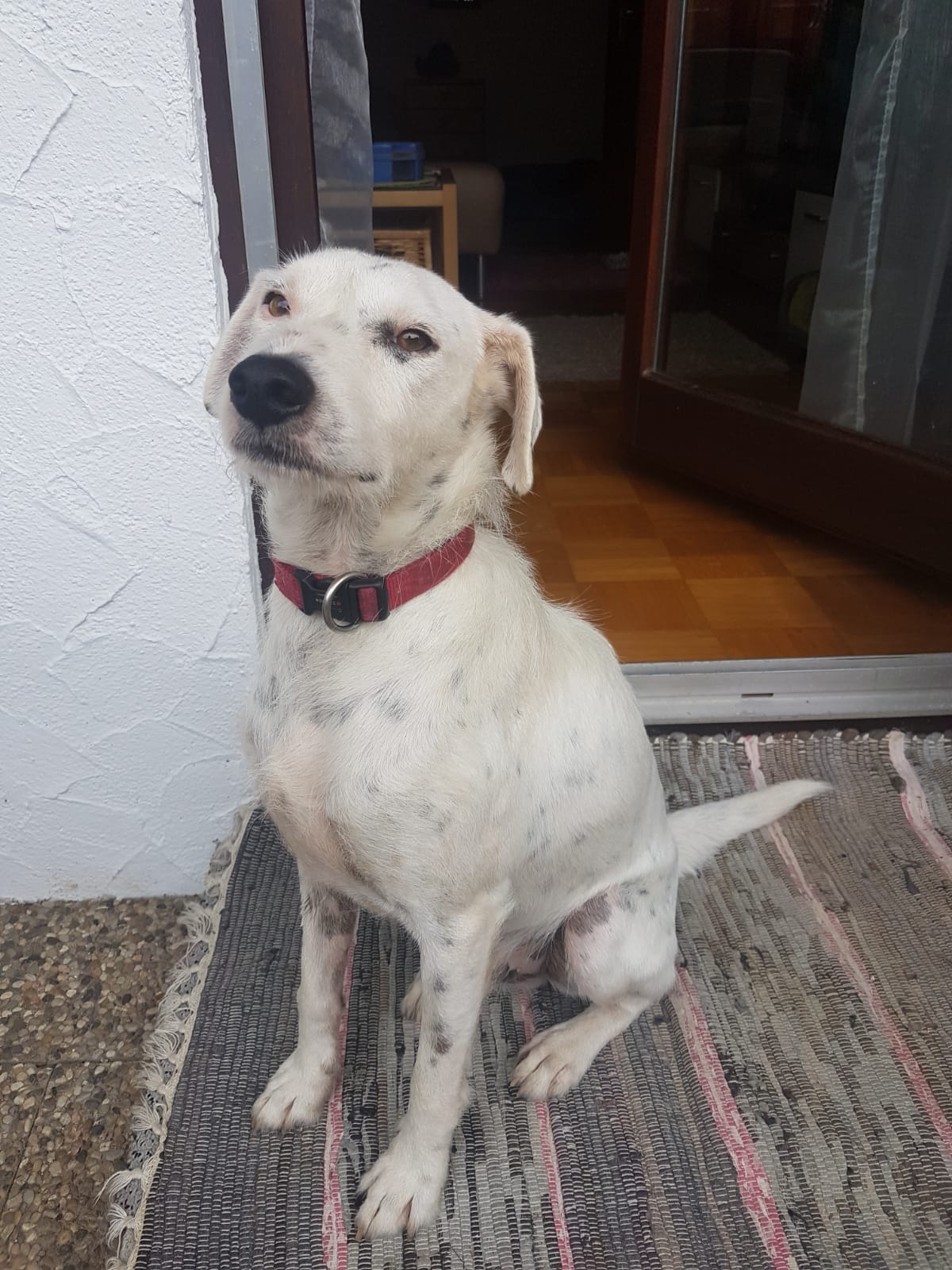 Die meisten der Geschichten unserer Schützlinge lauten in Ultrakurzfassung etwa so: Nach einer kurzen oder längeren Wartezeit im spanischen Tierheim folgt der Umzug in ein Zuhause in Deutschland oder eines unserer Nachbarländer; alle leben, manchmal mit Startschwierigkeiten, letztendlich glücklich und zufrieden bis ans Ende ihrer Tage. Oder so ähnlich. Manchmal nimmt das Leben jedoch Umwege, es ruckelt und knirscht, und die Geschichte nimmt ihr „Happy End“ erst ein wenig später…Pongo wartete ungefähr ein Jahr im spanischen Tierheim darauf, endlich von seinen Menschen entdeckt zu werden. Der Tag kam, unser gepunkteter Springinsfeld packte freudig sein kleines Köfferchen und machte sich mit seiner Reisegruppe auf, um endlich zu erfahren, was es mit diesem Familienhund- Dasein so auf sich hat. Seine Familie freute sich auf ihn, empfing ihn herzlich und gab sich alle Mühe, Pongo ebenso- doch irgendwie fanden Mensch und Hund nicht so recht zueinander, der sensible Pongo war vor allem mit den kleinen Zweibeinern überfordert und wusste nicht so recht, wie er sich ihnen gegenüber verhalten sollte. Kurzum- für alle Beteiligten war klar, dass der hübsche Kerl mit den lustigen Punkten besser in einer ruhigen Pflegestelle auf sein Happyend vorbereitet werden sollte. Innerhalb kürzester Zeit hat Pongo in seiner erfahrenen Pflegestelle nun viele Dinge gelernt, die ihn als echten Traumhund auszeichnen. Stubenreinheit, Autofahren und gemeinsam mit Artgenossen auf die Rückkehr der Zweibeiner warten, sind nur ein paar seiner Paradedisziplinen. Sensibel, wie er nun einmal ist, geht er auf fremde Menschen vorsichtig, aber nicht ängstlich zu- ein echter Gentleman also. Ist das Eis einmal gebrochen, mutiert der kleine Witzbold dann auch zum echten Clown, flitzt mit seinen Hundekumpels um die Wette und animiert grinsend alle Anwesenden, sich am Spiel zu beteiligen. Gegenüber seinen Artgenossen ist der hübsche Kerl ebenfalls zunächst zurückhaltend, taut jedoch sehr schnell auf und fügt sich unkompliziert ein. Da Pongo gerne in einem ruhigen Zuhause wohnen möchte, sollten Kinder dort schon die nötige Ruhe und Reife besitzen, die unsere gepunktete Mimose zum Entspannen braucht. Apropos Entspannung: Pongo eignet sich ganz hervorragend als Kuschelpartner an langen Abenden auf der Couch. Gleichermaßen genießt er jedoch ausgiebige Spaziergänge und brilliert bereits in Sachen Leinenführigkeit und Grundkommandos.Es wäre doch gelacht, wenn unser kleines Cleverle nicht bald ein Zuhause finden würde, in dem er in Ruhe ankommen und dann mit Schwung in ein neues Leben starten darf. Nach all der Unruhe hat es unser kleiner Charmeur auch mehr als verdient, sich endlich auf der Couch zwischen seinen Menschen breitzumachen und im sicheren Wissen einzuschlafen, für immer geliebt und geborgen zu sein. Sie sind eher nicht so der entschlussfreudige Typ? Macht nichts, spätestens, wenn Sie Pongo kennengelernt haben, wird es auch um Sie geschehen sein…