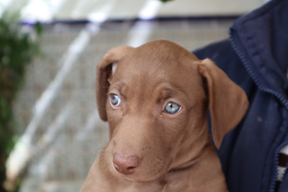 Die fünf Wonneproppen, die sich um ihre liebevolle Mama scharen, erinnern in Form und Größe an kleine Labradore und auch die Farbe könnte entweder auf einen der seltenen silbernen Labradore oder einen Weimaraner hinweisen. Auch die äußerst faszinierenden Augen der Kleinen lassen vorsichtige Schlüsse zu, dass einer der hübschen Jagdhunde seine Pfoten bei der Entstehung dieses wirklich außergewöhnlichen schönen Wurfs hatte.