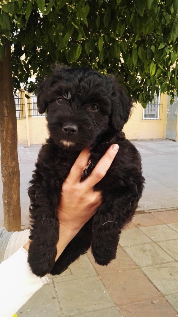 Es ist wundervoll, wenn Hunde ihrer Rasse entsprechend in guten Händen arbeiten können. Ich selbst lebe in einer Gegend mit vielen Schaf- und Ziegenherden und kann stundenlang den konzentrierten Hütehunden zuschauen, deren Aufmerksamkeit und Arbeitswille, Bewegungsfreude und Intelligenz mich über wieder überraschen (vor allem im Kontrast zu den hier in Südfrankreich zusätzlich in der Herde lebenden Herdenschutzhunden, die für mich der Inbegriff von Ruhe und Geborgenheit sind). Es ist also absolut kein Problem, wenn Menschen Hunde halten, mit denen sie arbeiten, aber es ist ein Problem, wenn diese Hunde ohne Kontrolle und ohne Sinn und Zweck vermehrt werden. Wir haben sechs zuckersüße Welpen in Sevilla, die sicher grandiose Familienhunde werden, aber eigentlich haben wir gerade in Südeuropa schon mehr als genug erwachsene, heimatlose Seelen, die sich auch ein Zuhause wünschen. Doch unser fideles halbes Dutzend kann natürlich nichts für die Unverantwortlichkeit des Halters ihrer Eltern, und so hoffen wir, dass die sechs Fellknäuel, die im Moment die absolut letzten Notfall-Pflegestellen in Sevilla belegen, ganz schnell tolle Familien finden.Der ehemalige Besitzer der gerade 10 Wochen alten Welpen ist ein Schäfer, der zwei Hündinnen und einen Rüden als Hütehunde besitzt. Papa aller Welpen ist ein reinrassiger Wasserhund, aber wir haben zwei Mamas – einen weiteren Wasserhund und eine reinrassige Border Collie-Dame. Schauen wir uns das Körbchen voller Babyhunde einmal genauer an. Bono und seine Schwester Eire sind die reinrassigen Lockenköpfchen (oder auch Bommel) der 12-ohrigen Bande. Sieht man alle sechs Babys auf einem Haufen, fällt Bono sofort auf, denn er ist ein weißer Hund mit schwarzen Flecken – all seine (Halb)geschwister sind schwarze Hunde mit mehr oder weniger weißen Flecken (wobei Melendi sich sehr bemüht, die goldene Mitte zu repräsentieren, und die beiden Mädchen deutlich der Meinung „black is beautiful“ anhängen). Rafael, Melendi und Camilo sind die männlichen Vertreter der Border Aguas (oder Wassercollies?!) und sie haben noch eine kleine, aufgeweckte Schwester, Malu, die ihren Brüderchen in keiner Weise nachsteht.Sechs Mal Cuteness Overload – und wirklich, diese Schätze müssen dringend bald ihre Reise ins Glück antreten, nicht nur, weil man seinen Lieblingsmenschen nicht früh genug kennenlernen kann, sondern weil wir dringend die Pflegestellenplätze in Sevilla brauchen (und natürlich möchten wir auch nicht, dass die lustige Rasselbande nach dem Aufbauen des Impfschutzes doch noch ins Tierheim umsiedeln muss).