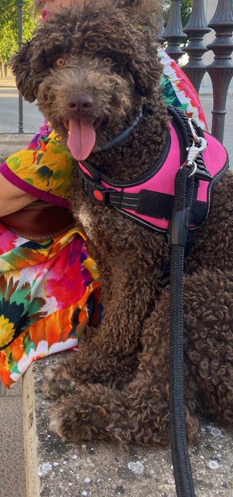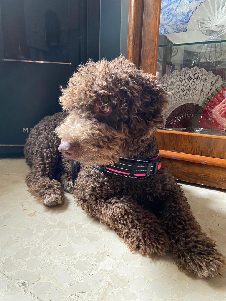 Wir wissen, dass irgendwann jeder Style wieder zurück in unsere Kleiderschränke, auf unsere Köpfe oder an unsere Füße findet. Im Moment ist „retro“ absolut up to date, und die 80er sind ein Dauerbrenner. Rika hat die zum Trend passenden Strähnchen in der Dauerwelle von Mutter Natur geschenkt bekommen und ihre blonden Löckchen im schokoladenbraunen Fell geben einen bildhübschen Kontrast zu ihren bernsteinfarbenen Augen, die vertrauensvoll und neugierig in die Welt blicken.