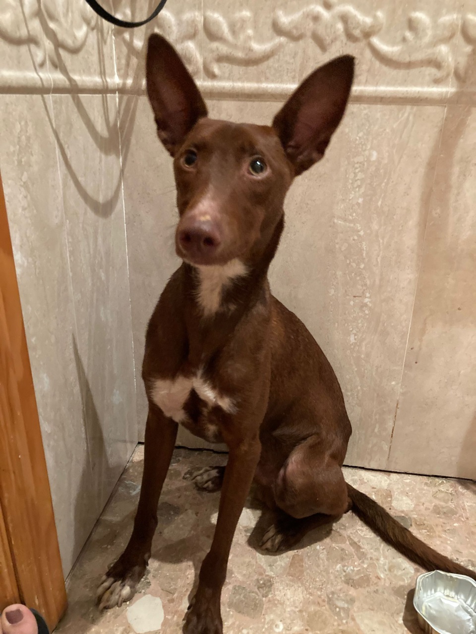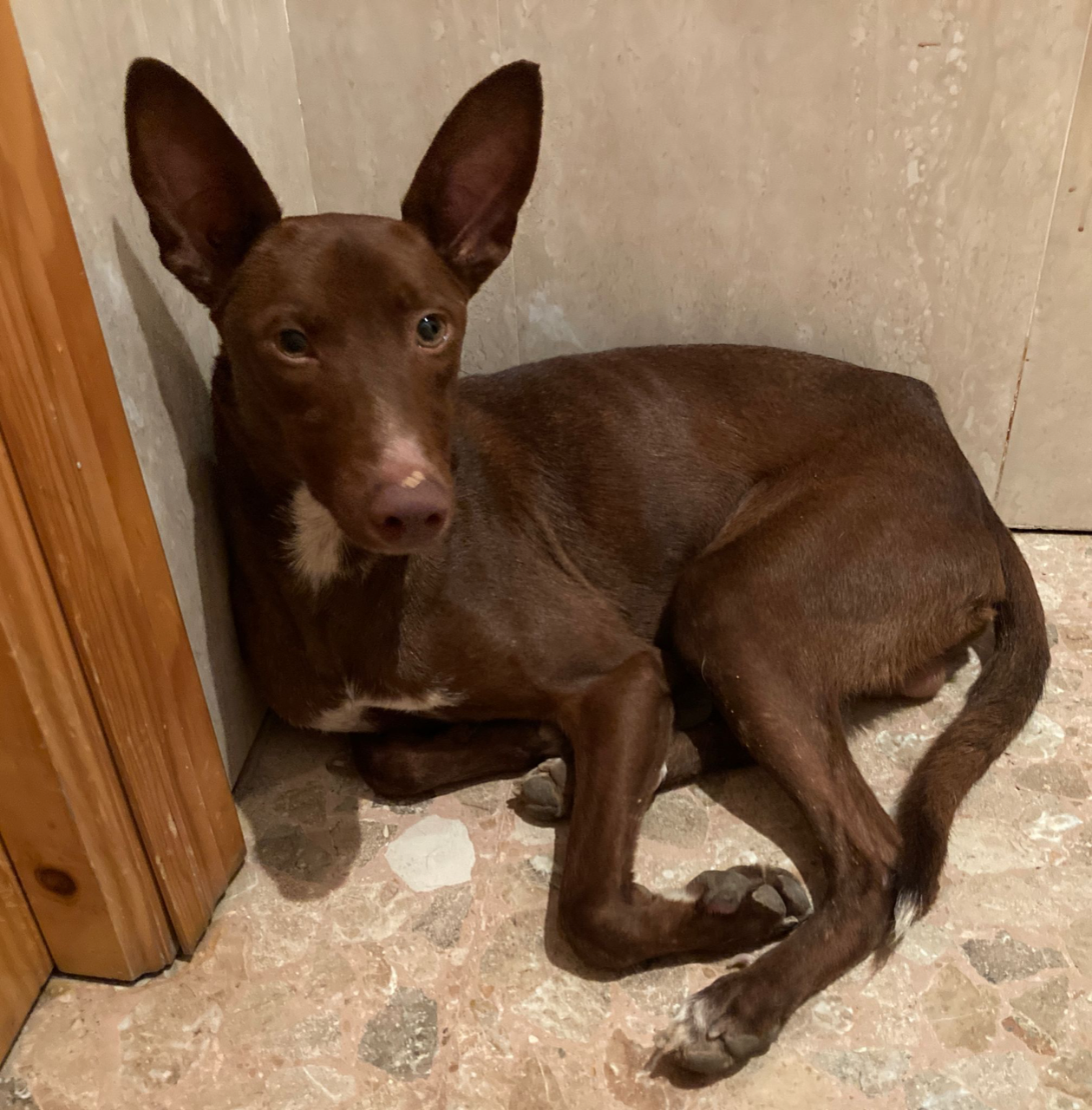 Río – das bedeutet Fluss, und in Río Fall heißt dieser Fluss wohl Nil. Selten habe ich einen so bildhübschen Podenco-Mix gesehen, und wer die seltene Rasse der Pharaonenhunde kennt, wird mir zustimmen, dass Ríos Äußeres schon sehr an diese elegante und uralte Rasse erinnert.