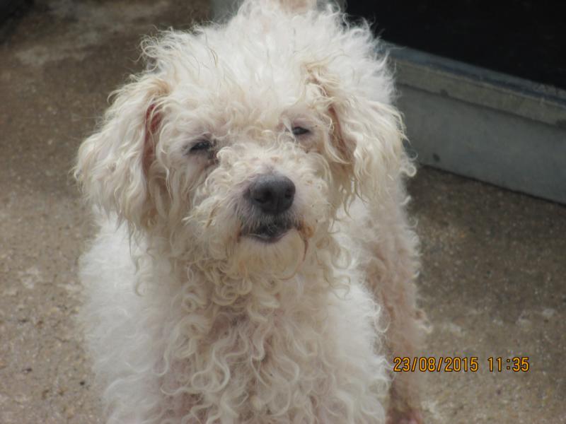 Rizzo irrte allein durch die Straßen von Linares, als er von einer tierlieben Familie gefunden wurde. Wie ein Hunde-Gentleman seines Alters dorthin kam, wird wohl immer ein Geheimnis bleiben, wobei der Verdacht naheliegt, dass er einfach ausgesetzt wurde, weil er nicht mehr der energiegeladene, problemlose, gesunde Hund von früher ist. Seine Retter nahmen ihn mit nach Hause, badeten ihn, befreiten ihn von den schlimmsten Verklebungen und versorgten die Verletzungen, die sich der schneeweiße Pudel durch im Fell befindliche Dornen und Zweige zugezogen hatte, und sie gaben ihm auch einen Schlafplatz, wo sich Rizzo wohl seit langer Zeit das erste Mal richtig ausruhen konnte. Leider war es den Tierfreunden aber nicht möglich, dem netten Hundeopa ein Zuhause zu schenken und so mussten sie ihn in der ArcoNatura abgeben. Natürlich bemühen sich unsere Partner, Rizzo das Leben im Tierheim so einfach wie möglich zu machen, aber ein kleiner Senior hat es schwer, und der traurige Großvater leidet auch sehr unter der Trennung von seinen Rettern. Vermutlich hat er sein Leben bei ein und derselben Familie verbracht und fand in den Händen seiner neuen Freunde gerade wieder Geborgenheit, als er den nächsten Verlust verkraften musste. Die Welt der Gitter und Zäune, der lauten Geräusche und der einsamen Nächte ist nichts für den ruhigen Schneeball, der sich so sehr nach menschlicher Nähe und einem weichen Kuschelkissen sehnt.