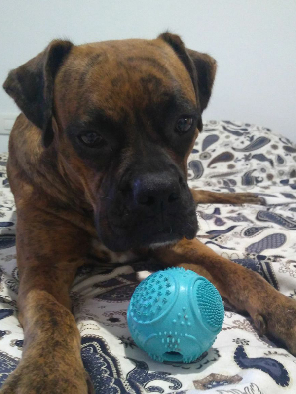 Wer kennt sie nicht, die Merkel-Raute – formen Sie diese Geste doch einmal mit Ihren Händen, und dann stellen Sie sich vor, Sie hätten einen Hund, dessen Bauchumfang zwischen Ihre aneinandergelegten Finger passt. Wenn Sie ähnlich denken wie ich, dann haben Sie nun einen Yorkshire-Terrier im Kopf, vielleicht einen wirklich klein geratenen Zwergpudel, einen Jack-Russell-Terrier oder ähnlich bodennahe Rassen. Allerdings hätte auch Roxanna gepasst – und Roxanna ist ein Boxer. Als unsere Freunde in Sevilla das skelettartige Wesen zum ersten Mal in die Tierklinik brachten, als mich die ersten Fotos und die Bitte für einen Spendenaufruf erreichte, standen wir alle unter Schock, in welch schlechter Verfassung die erst eineinhalb Jahre alte (Stand 08/2017) Hündin war. Abgemagert bis auf die Knochen, anämisch durch Tausende von Parasiten, positiv auf Anaplasmose, Ehrlichiose und leider auch Leishmaniose – doch die Hoffnung stirbt zuletzt, aber es gab wirklich nur wenig für Roxanna. Wie so oft wurden wir jedoch überrascht, was für eine Rolle Liebe bei der Heilung spielt. Die lustige Boxerdame kämpfte wie ein Weltmeister, schon nach wenigen Tagen fing sie an, ihre Retter überschwänglich zu begrüßen, sie legte in Rekordgeschwindigkeit an Gewicht zu und konnte wesentlich schneller als erwartet in eine liebevolle Pflegefamilie umsiedeln.Heute ist Roxanna ein verspieltes, aber schon sehr ausgeglichenes und zärtliches Mädchen. Sie ist enorm umgänglich mit Mensch und Tier und hat schon alles gelernt, was man als guter Familienhund so können muss. Vom Kuscheln im Bett über das Autofahren, Einkaufen, Tierarztbesuche, erfolgreiches Betteln und Erobern der Couch – nichts ist Roxanna zu schwer, und sie schenkt ihrer Gastfamilie so manches herzliche Lachen.Roxanna ist ein liebenswertes und extrem liebevolles Mädchen, das nach ihrem schweren Kampf ein wundervolles Leben verdient hat. Ihre Leishmaniose ist bisher ohne Symptome verlaufen, und es muss nicht sein, dass Roxanna je in ihrem Leben einen Schub durchmachen muss. Allerdings ist es natürlich möglich und Stress und häufige Veränderung können dem Vorschub leisten. Deswegen sucht Roxanna Boxerfreunde, die ein gemütliches, aber durchaus humorvolles Heim anbieten können. Wenn Sie Roxanna das Zuhause schenken wollen, das wir uns für unser ehemaliges Sorgenkind wünschen, setzen Sie sich doch bitte mit unseren Vermittler/Innen in Verbindung. Wir erklären Ihnen gerne genauer, was die Diagnosen der wundervollen Kraftsportlerin bedeuten (können) und helfen Ihnen, wo wir können – aber geben Sie Roxanna bitte eine Chance auf eine grandiose Zukunft.