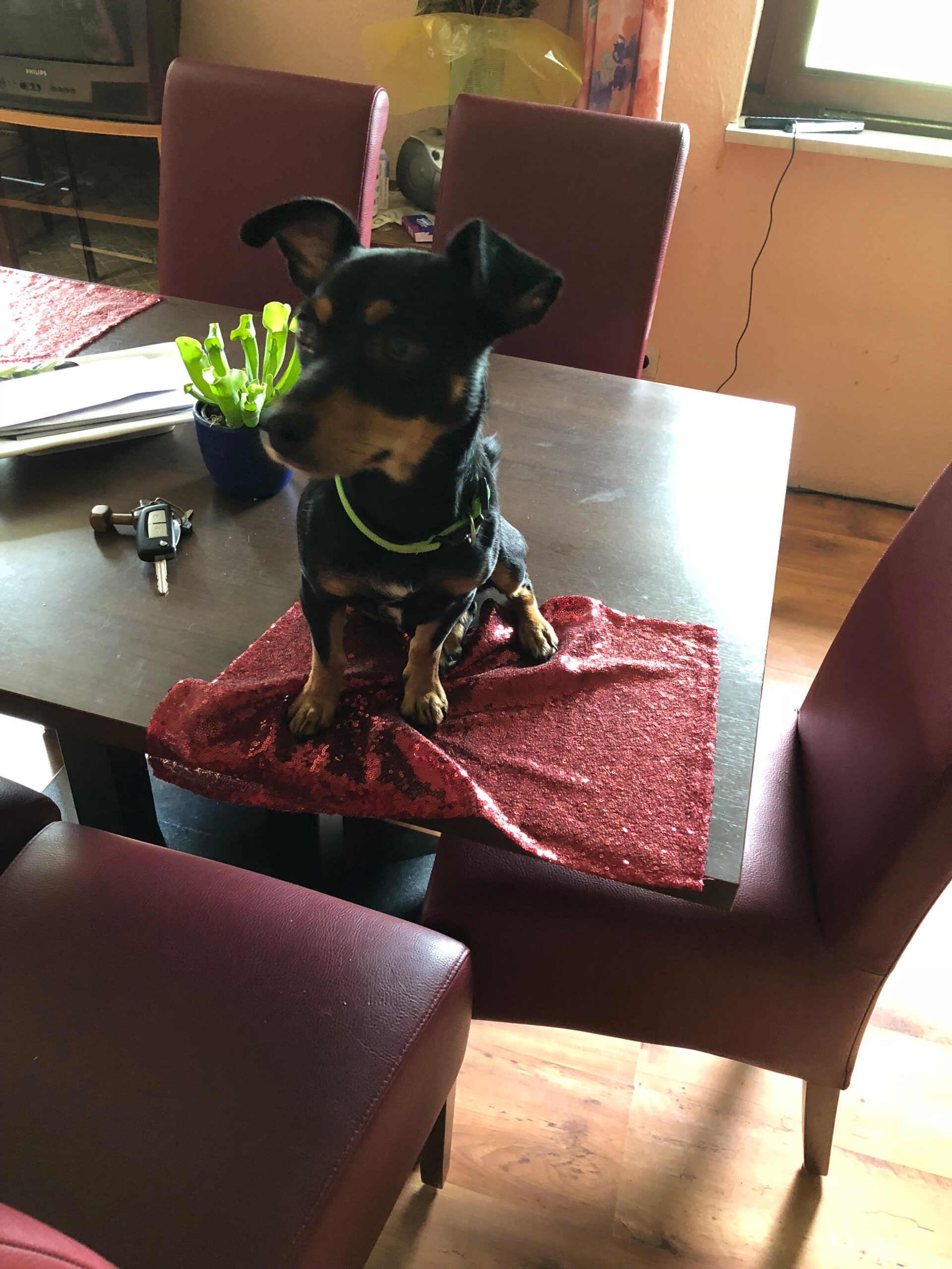 Saku ist ein extrem liebes und für ihre Rasse sehr ruhiges Pinscher-Mix-Mädchen von gerade mal acht Monaten (Stand 05/2018) Lebensalter. Die freundliche und sehr anhängliche Hündin stand vor der ArcoNatura, angebunden an den Olivenbaum neben dem Tor. Diese Methode, sich seines Haustiers zu entledigen, wenn es dem niedlichen Welpenalter entwachsen ist, erfreut sich in Linares leider viel zu großer Beliebtheit. Die Menschen, die ihre Vierbeiner dort zurücklassen, denken vermutlich, sie wären besser als diejenigen, die ihre nicht mehr gewollten Familienmitglieder einfach auf der Straße aussetzen, aber dem ist nicht so.Für die Hunde, die oft stundenlang warten müssen, bis unsere Freunde kommen, um ihre Schützlinge zu versorgen, ist das Stehen vor verschlossenem Tor der absolute Horror-Trip. Von drinnen bellt es ununterbrochen, oft auch drohend und aggressiv, die fluchtunfähigen Tiere rechnen sekündlich mit einem Angriff und sind vor Angst oft wie gelähmt, wenn sie dann endlich losgebunden werden. Im schlimmsten Fall kommt es sogar zu einem echten Kampf, denn viele Streuner suchen die Nähe des Tierheims in der Hoffnung, dass hin und wieder etwas Futter für sie abfällt. Ein wehrloses, noch dazu so kleines Mädchen wie Saku ist für manche der Straßenhunde nicht mehr als ein dankbares Opfer…Saku hatte Glück, sie hat den schlimmsten Tag ihres Lebens ohne psychische und physische Schäden überstanden und kann nun in aller Ruhe abwarten, bis sich – hoffentlich bald – ein echtes Zuhause für sie findet.Wie erwähnt ist Saku ein eher ruhiges Exemplar, vor allem, wenn man bedenkt, dass ein Großteil ihrer Gene offensichtlich vom Pinscher stammen, man muss sich aber auch immer im Klaren darüber sein, dass unsere Junghunde durchaus noch verborgene Talente entdecken können (und meist auch werden), wenn sie erst einmal wieder ein Heim haben, in dem sie geborgen und in Sicherheit lernen und forschen können. Saku sucht aktive und fröhliche Menschen, die für Überraschungen offen sind und ihr mit Geduld und Liebe zur Seite stehen – und selbstverständlich versprechen, dass das kleine Mädchen nie wieder einfach im Stich gelassen wird…
