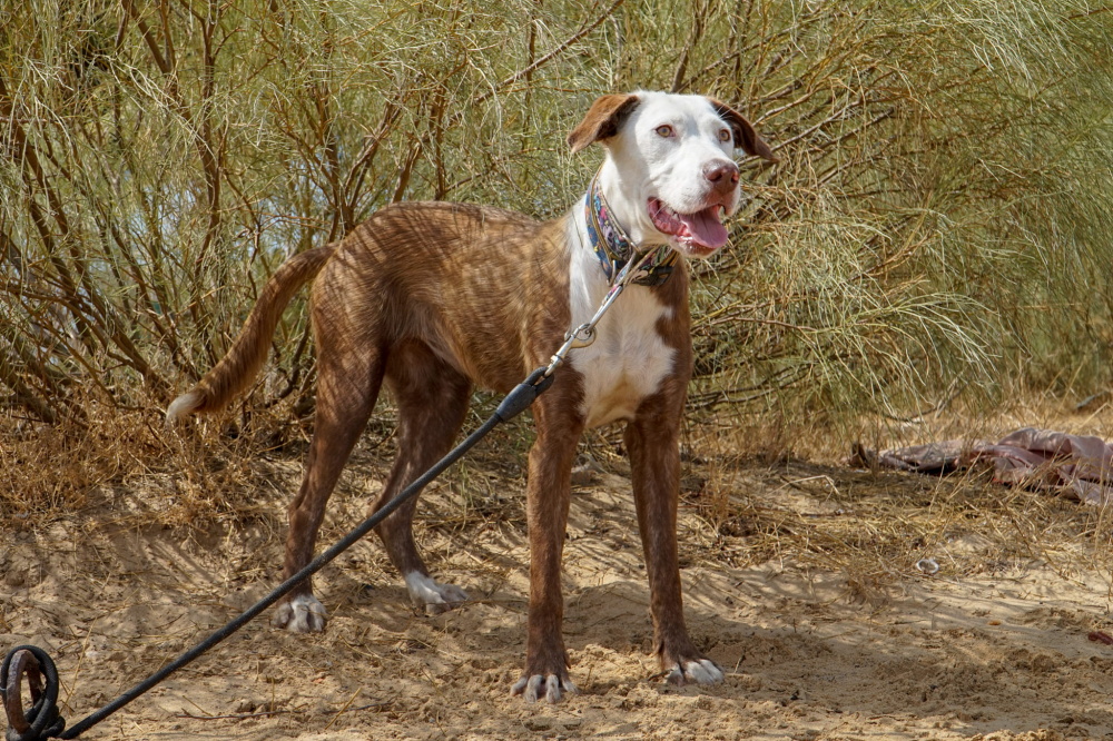Bei ihrer Rettung im November 2023 wanderte Sidney allein durch Huelva und bettelte bei Passanten um Futter und Streicheleinheiten, schon damals zeigte sie keinerlei Angst – was ihr bei vielen Menschen zum Verhängnis wurde. Sidney ist aber nach wie vor sehr kontaktfreudig, auch mit anderen Hunden. Freundlich und in ihrer Kommunikation eindeutig erobert sie im Pfotenumdrehen alle Herzen.