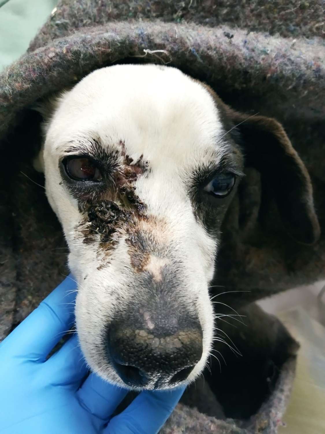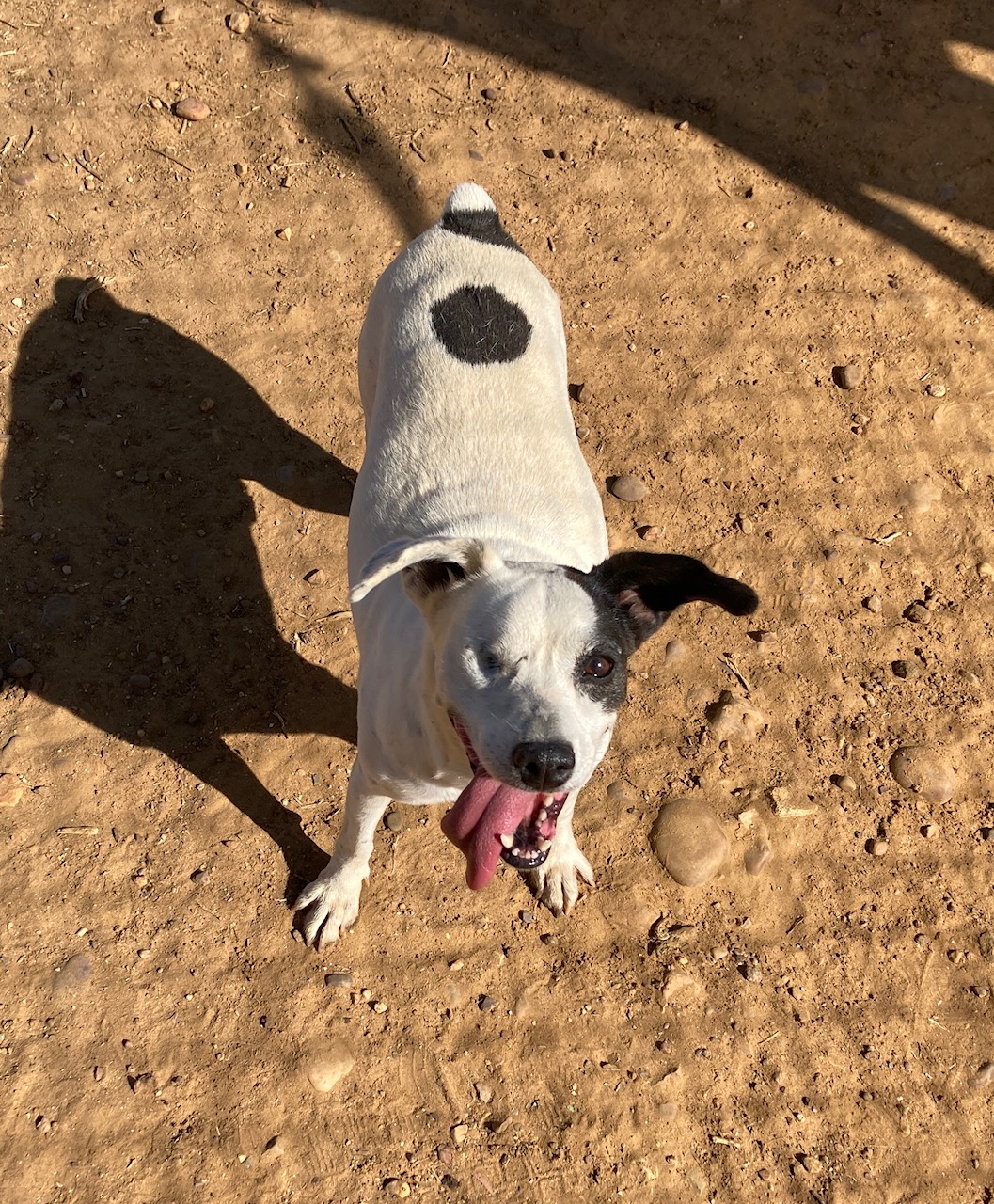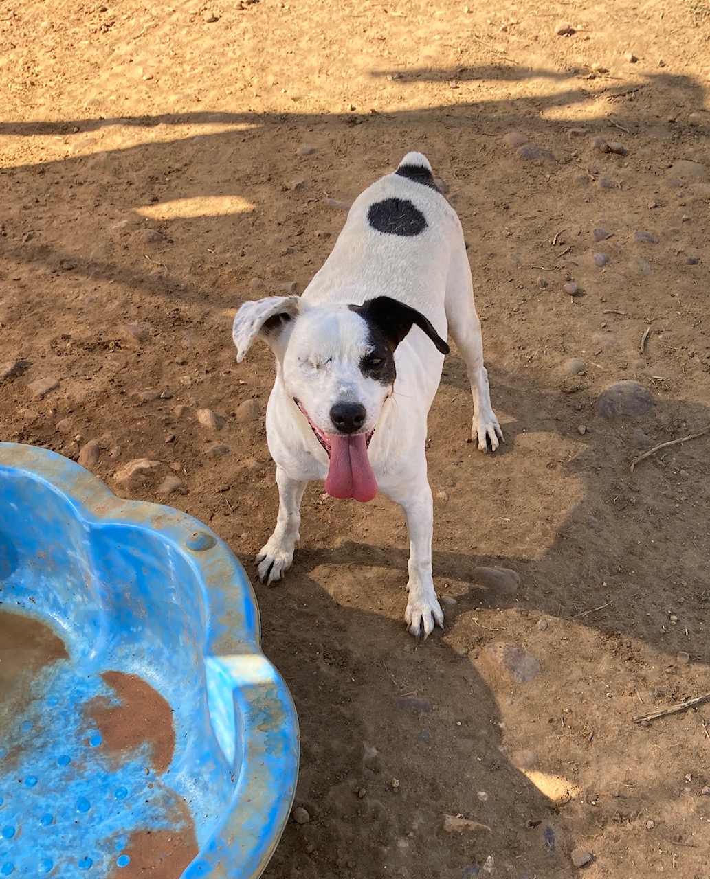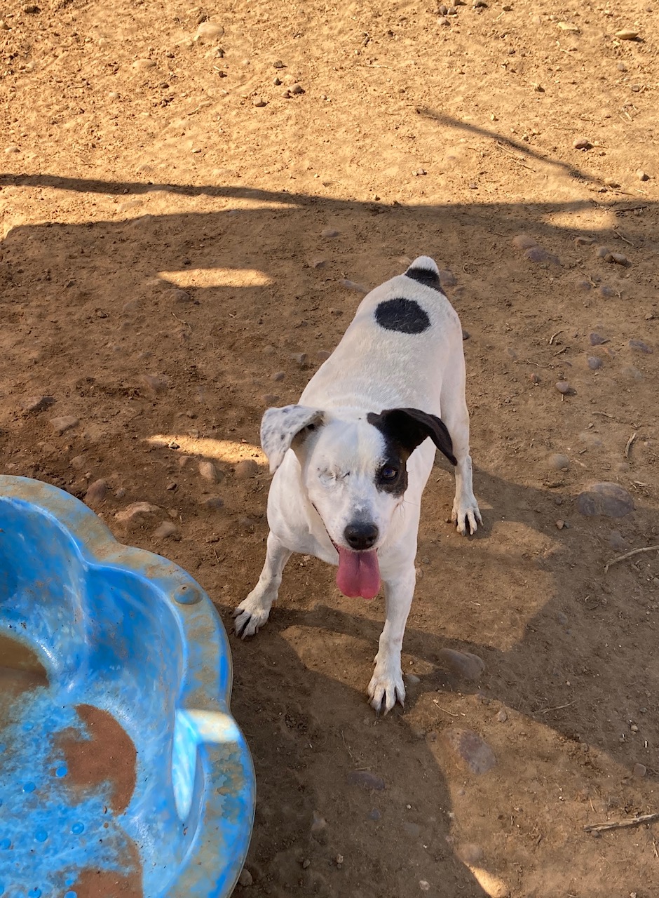 Sparrow kam vor vier Monaten in die Obhut unserer Freunde in Sevilla. Obwohl es natürlich vorkommt, dass Hunde in einem schrecklichen Zustand ins Tierheim kommen, ist es immer wieder ein Horror, so ein hilfloses Wesen in einen Kampf mit ungewissem Ende begleiten zu müssen. Sparrow war von Parasiten übersäte, vermutlich lag er lange einfach nur auf der Seite neben einer Straße, denn seine Hinterbeine waren partiell gelähmt und das Aufstehen und Laufen war kaum noch möglich. Ein Auge war so schwer verletzt, dass die Tierärzte es aufgrund der fortschreitenden Infektion direkt entfernen musste. Ein Tier in so einem erbärmlichen Allgemeinzustand operieren zu müssen, ist immer eine Herausforderung – und viele wachen nicht mehr auf. Aber Sparrow ist ein unglaublicher Kämpfer, und wer jetzt ins Tierheim der Arca Sevilla kommt und unserem lustigen Kuhflecken-Charmeur begegnet, würde niemals vermuten, welche Geschichte der Pirat zu erzählen hat.