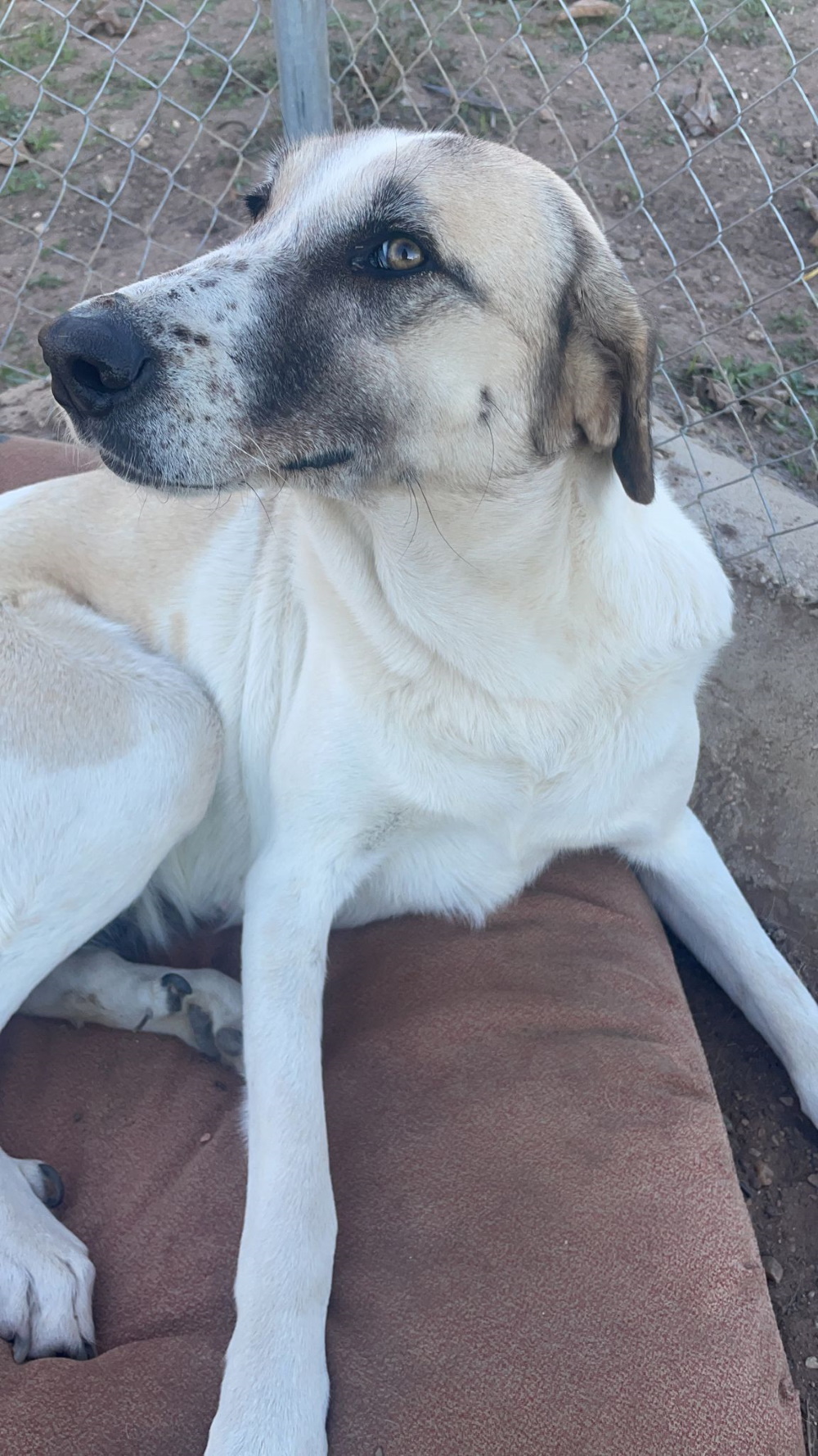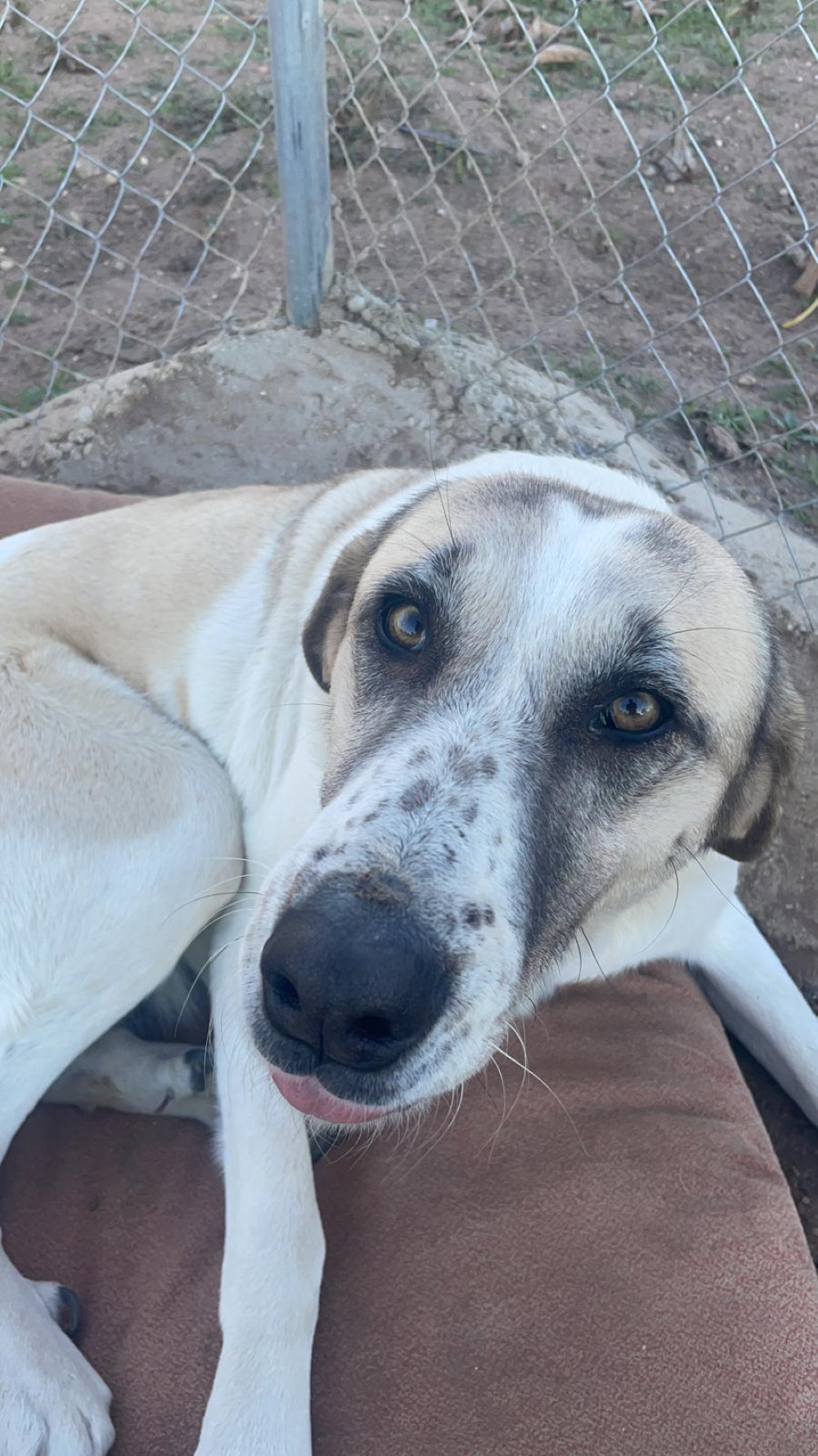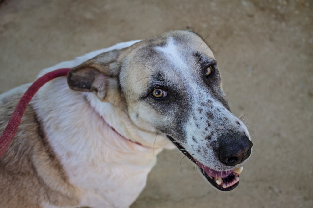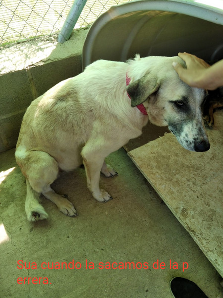 Unsere hübsche Sua ist eine wundervolle Mastin-Mix-Dame. Sua kam zu unseren Partnern von Dolmen Animal aus einem der vielen öffentlichen Zwinger. Da das staatliche Tierheim von einem Waldbrand bedroht war, durften einige Tiere in die Obhut von Tierschutzorganisationen umziehen – und in Suas Fall war das ein echter Gamechanger.
