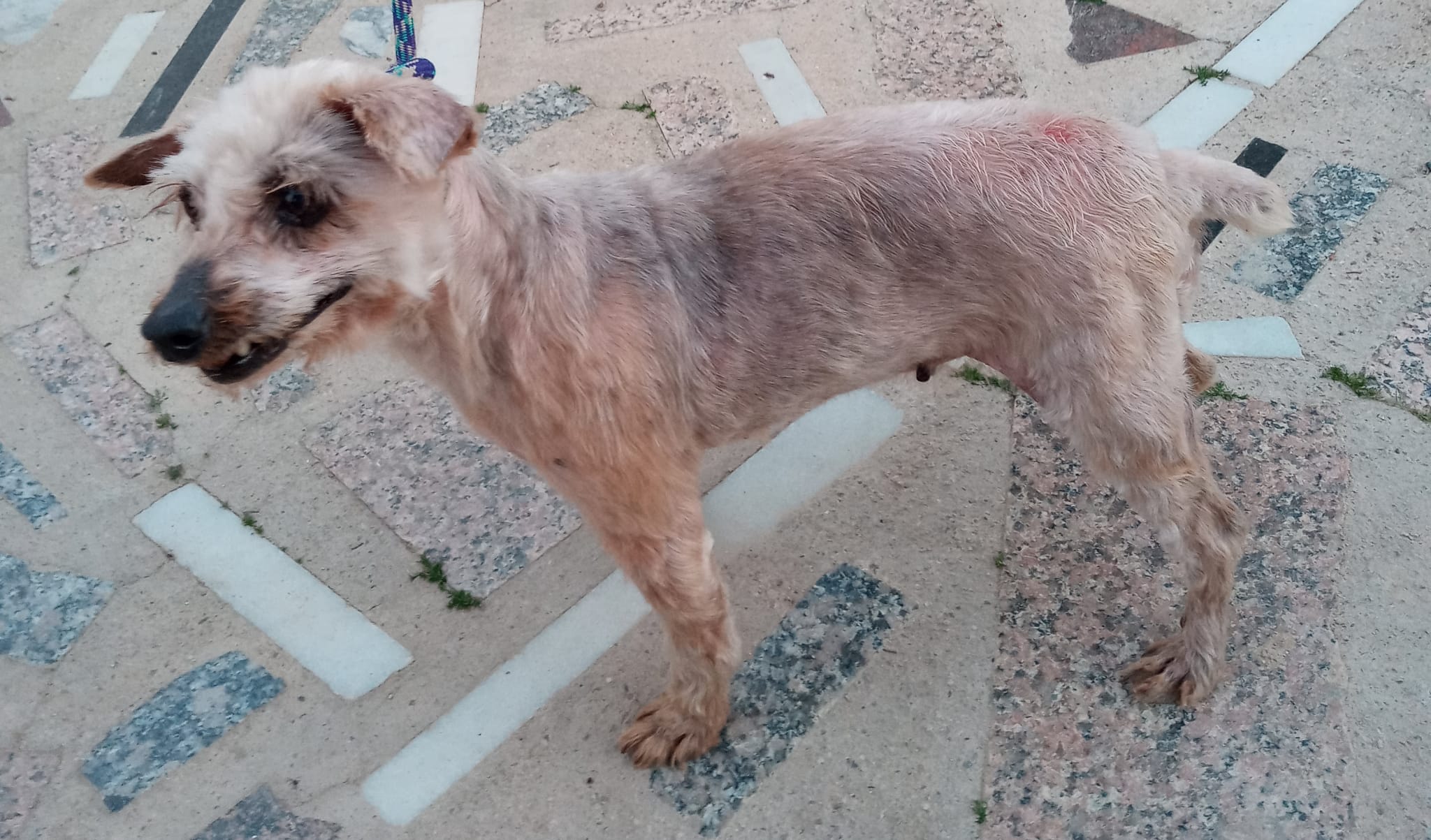 Suka wurde auf den Straßen von Linares entdeckt, wo sie auf der Suche nach Hilfe durch die Gegend schlich. Das Fell verfilzt, die Ohren entzündet, die Pfoten verletzt – Suka war ein gebrochenes Wesen, das begonnen hatte, sich und das Leben aufzugeben.