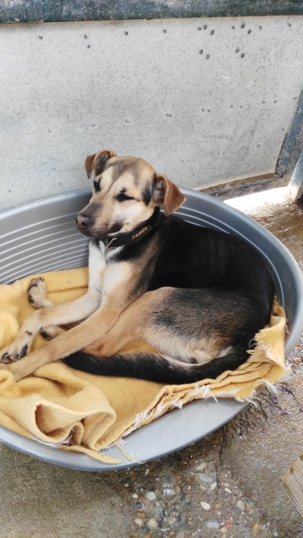 Als Suly im März 2016 in einem Straßengraben gefunden wurde, wussten die Tierschützer in Linares, dass sie hier einen Hund vor sich hatten, der ums blanke Überleben kämpft – und sie taten alles dafür, die fünfjährige (Stand 07/2016) Mischlingsdame dabei zu unterstützen.Suly war so entkräftet, unterernährt und dehydriert, dass sie sich nicht ohne Hilfe auf den Beinen halten konnte, ob und wie viel sie sehen konnte, war nicht klar, denn ihre Augen waren hochgradig entzündet und durch unzählige Parasiten und Infektionen litt Suly unter einer erschreckenden Anämie. Mit ganzem Herzen und unendlichem Zeiteinsatz pflegten die Freiwilligen der ArcoNatura das dankbare Mädchen und mittels liebevoller Zuneigung und der hervorragenden Behandlung durch unsere Tierärztin Montse erholte sich die lebensfrohe Kämpferin viel schneller, als es jeder erwartet hatte. Ihre Vorgeschichte und die schrecklichen durchgestandenen Schmerzen hatten Suly geprägt und anfänglich war die kniehohe Schönheit verunsichert, ängstlich und hatte wenig Vertrauen, ihr Verhältnis zu den Menschen und den anderen Hunden war geprägt von Unterwürfigkeit und schon fast paralytischer Angst. Unsere Freunde in Linares hatten schon Angst, dass sich Suly zu einem ganz großen Sorgenkind entwickeln würde, als die Knutschkugel von sich aus einen ganz anderen Weg einschlug. Erst suchte sich Suly vereinzelte Freunde unter ihren Artgenossen, begann zu spielen und sich an ihre neugewonnen Kumpels anzuschließen, und schon nach wenigen Wochen war sie ein fester und sehr beliebter Teil des großen Rudels, begrüßte Neuankömmlinge und half anderen Hunden, Fuß in der Gruppe zu fassen. Mit wachsendem Selbstbewusstsein kam auch die Zuneigung zu den Menschen, Suly suchte Kontakt, genoss die ersten Streicheleinheiten und jetzt, nur vier Monate nach ihrer Rettung, ist die Tricolor-Schönheit eine richtige Schmusebacke geworden. Suly hat bewiesen, dass in ihr eine Kämpferin steckt, ein großes Herz, unendlich viel Liebe und die Fähigkeit zu verzeihen. Jetzt suchen wir Menschen, die Suly zeigen, was es heißt, ein geliebtes Haustier zu sein, echte Freunde zu haben, beschützt zu werden und nie wieder um die nächste Mahlzeit kämpfen zu müssen. Wir sind uns sicher, dass die Familie, die Suly Herz und Haus öffnet, dafür die beste Freundin bekommt, die man sich nur wünschen kann.