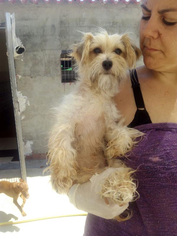 Juli 2015, ein heißer Sommer in ganz Europa, doch in Spanien misst man weit über 40° C, der Asphalt kocht und man möchte nicht aus dem Haus gehen. An so einem Tag entdeckten unsere Freunde in Andalusien auf Facebook einen Hilferuf einer Tierfreundin. Sie hatte über Tage immer wieder einen kleinen weißen Hund gefüttert, der sehr mitgenommen aussah, aber es war ihr nicht gelungen, ihren Schützling ins Haus zu holen. Die ArcoNatura setzte sich mit der Dame in Verbindung, erfragte die genauen Sichtungsorte und es begann eine Suche in glühender Hitze. Anfänglich fand man keinen Hinweis auf den Vierbeiner, aber da es immer wieder Sichtungen gab, ließ man nicht nach, den hilfebedürftigen Wuschel zu suchen – und endlich: Am 16.7.2015, bei mehr als 44° C, sah man Suri das erste Mal. Natürlich galt es als erstes, das Vertrauen der kleinen Terrier-Mix-Dame zu bekommen, und so stellte man ihr still Wasser und Futter zur Verfügung und wartete. Als Suri sich näherte, kam auch ihre Freundin Summer, die bisher niemand gesehen hatte, aus dem dichten Gebüsch gekrochen und schon bald hatten die Tierschützer mit den zwei Mädchen Freundschaft geschlossen. Das Tierheim unserer Partner quillt über und selbst die Futterversorgung bereitet einiges an Kopfzerbrechen. Dinge wie „wir können nicht allen helfen“, „wir müssen erst einmal die satt kriegen, die schon da sind“ und ähnliches hallten natürlich auch in den Ohren der Retter, aber, wie sollte es auch anders sein, weder Suri noch Summer wurden zurückgelassen. So leben nun eben beide im Tierheim der ArcoNatura und warten darauf, bald in ein richtiges Zuhause ziehen zu dürfen.Suri ist ein hübsches, kleines Mädchen, dem man die Strapazen des Lebens auf der Straße noch ein wenig ansieht. Regelmäßige Fellpflege und gutes Futter machen aus der niedlichen Schneeflocke aber bestimmt in kürzester Zeit eine Schönheit. Viel wichtiger als ihr Äußeres ist der wundervolle Charakter der eineinhalb Jahre alten (Stand 08/2015) Hündin. Anhänglich und extrem aufmerksam würde sie den freiwilligen Helfern am liebsten den ganzen Tag folgen. Ihre wachen Augen beobachten jeden Arbeitsablauf und sie ist schnell eine Freundin von Jung und Alt, vier- und zweibeinig geworden. Suri ist klein, lernbegierig, sehr menschenbezogen und ein wirklich braves Wesen. So können wir ohne Einschränkung sagen, dass unser Sahnebaiser für jeden Hundefreund geeignet ist. Ob als Nanny für den Nachwuchs oder Begleiterin rüstiger Senioren auf Spaziergängen in der Nachbarschaft, ob als Minifeger auf dem Agility-Platz oder Spielgefährtin für einen anderen Vierbeiner, Suri ist für jede Karriere offen, die ihr nur genügend an Liebe und Aufmerksamkeit garantiert.