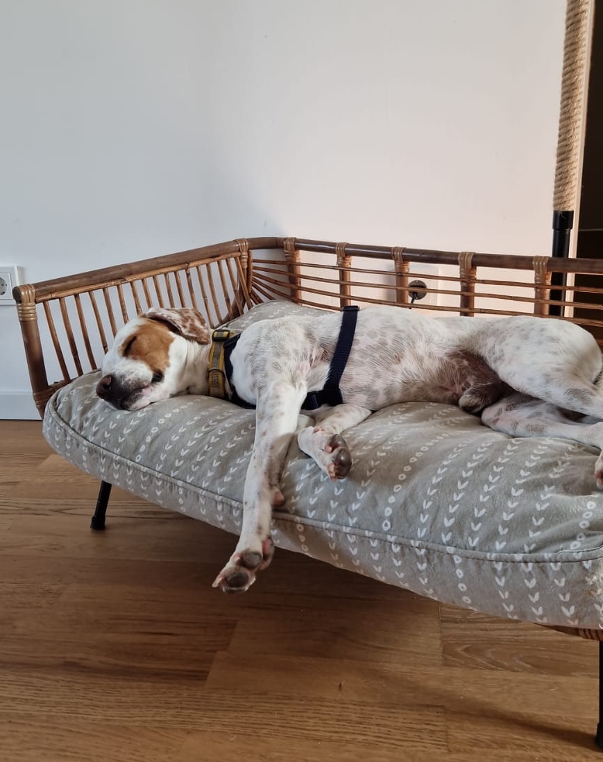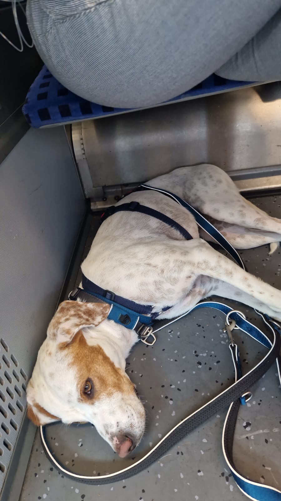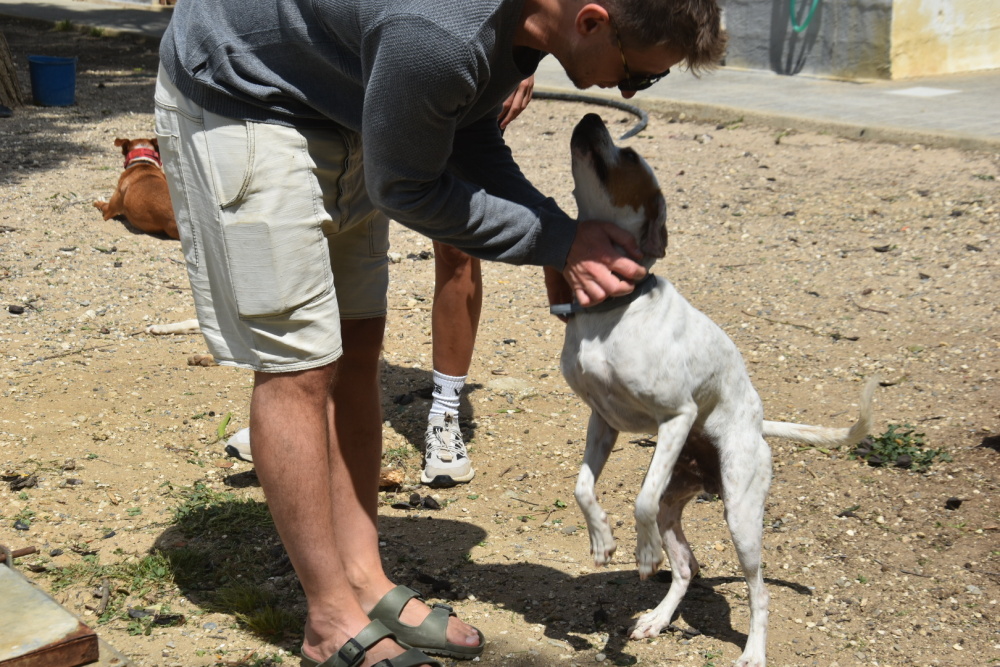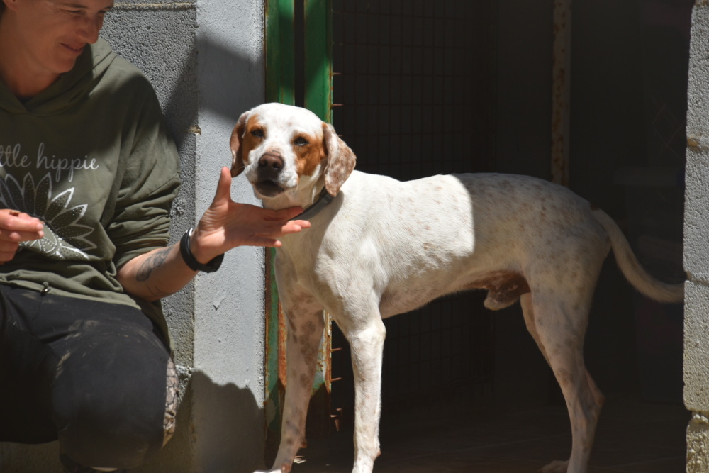 Taco ist ein dreijähriger (Stand 06/2025) Pointer-Mischling, der mit seiner charmanten und witzigen Art sofort alle Herzen erobert. Bereits bei seiner Rettung hat er gezeigt, dass er ein Hund voller Überraschungen ist: Er stieg ganz selbstverständlich ins Auto der Tierschützer, nachdem sie ihn gerufen hatten (Taco hielt tiefenentspannt eine Siesta mitten auf der Straße, und zeigte sich auch nicht sehr beeindruckt, als er beinahe von einem LKW überrollt wurde … ganz im Gegensatz zu den Tierschützern des Refugio Kimba!) – als hätte er an diesem Tag schon gewusst, dass es Zeit ist, ein neues Kapitel in seinem Leben aufzuschlagen.