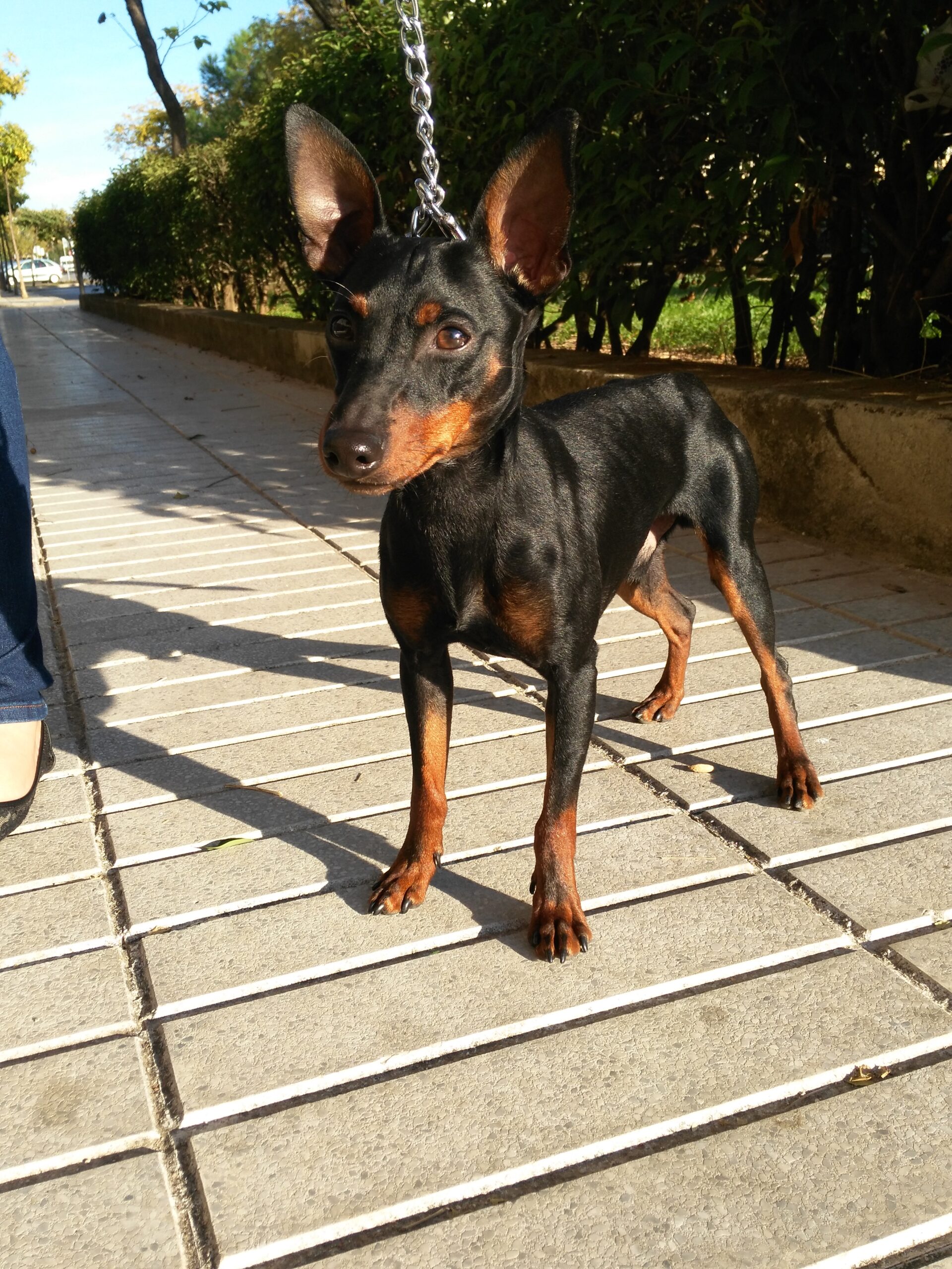 Oft bekommen wir die Frage zu hören, weshalb wir so einen Aufriss um unsere Hunde machen, einen ausführlichen Fragebogen von Interessenten ausgefüllt haben möchten, Telefonate führen und dann noch eine Kontrolle des potentiellen neuen Zuhauses durch einen Tierschützer durchführen. Das können wir Ihnen ganz genau sagen: damit unseren Hunden nicht solches Unglück geschieht wie unserem Neuzugang Tango.Der kleine Pinscher- Rüde wurde im Frühjahr 2016 von seinen Besitzern angeschafft, ohne sich darum zu scheren, ob die Haltung eines Tieres in der Wohnung überhaupt erlaubt ist. In diesem Fall war sie es nicht, der Vermieter bekam natürlich Wind davon und drohte mit der Kündigung des Mietverhältnisses. Genauso schnell, wie Tango angeschafft worden war, musste er auch wieder weg. Zum Glück bat seine “Familie” die Mädels der ArcoNatura um Hilfe und so durfte der kleine Mann mit den Fledermausohren in eine liebevolle Pflegestelle einziehen. Tango kommt mit sämtlichen Zweibeinern, auch den kleinen, prima klar. Er ist ein verspielter, fröhlicher Kumpel, der auch mit seinen vierbeinigen Kollegen keinerlei Probleme hat. Der ca. 9 Monate alte (Stand 11/ 2016) Springinsfeld präsentiert sich als sehr unkomplizierter und liebenswerter Kerl, kennt bereits einige Grundkommandos und läuft gut an der Leine. Kenner schreiben über den Charakter dieser hübschen Intelligenzköpfchen: “Die Wesenszüge des Pinschers sind viel Temperament, Aufmerksamkeit, Ausbildungsfähigkeit, gutartiger Charakter mit viel Spiellust, Anhänglichkeit zum Herrn und unbestechliche Wachsamkeit, ohne jedoch ein Kläffer zu sein. Dem Pinscher entgeht nichts, er meldet jedes ungewöhnliche Ereignis und geht diesem nach. Er ist selbstsicher und ausgeglichen, gepaart mit Klugheit und großer Ausdauer, was ihn zu einem angenehmen Familien-, Wach- und Begleithund macht. Durch seine Größe und sein glattes, pflegeleichtes kurzhaariges Fell ist der Pinscher im Haus angenehm zu halten.Gleichzeitig ist und bleibt er aber ein eigenständiger, selbstsicherer Hund mit einem besonderen, eigenen Charakter, dem man seinen Freiraum lassen sollte.”Kurz gesagt- Tango ist ein toller Kerl, der nun hoffentlich auf diesem Weg sein ganz großes Glück findet. Doch nicht nur er, wir sind uns sicher, dass auch die Menschen, die diesem Traumhund ein Zuhause geben werden, ganz große Glückspilze sind und einen überaus treuen Begleiter in allen Lebenslagen ihr Eigen nennen können. Wir freuen uns jedenfalls schon auf die Fotos aus Tangos neuem Kuschelkörbchen, beim Spaziergang, inmitten seiner geliebten Zweibeiner. Sie haben sich verliebt? Prima, dann wissen Sie ja, was zu tun ist!