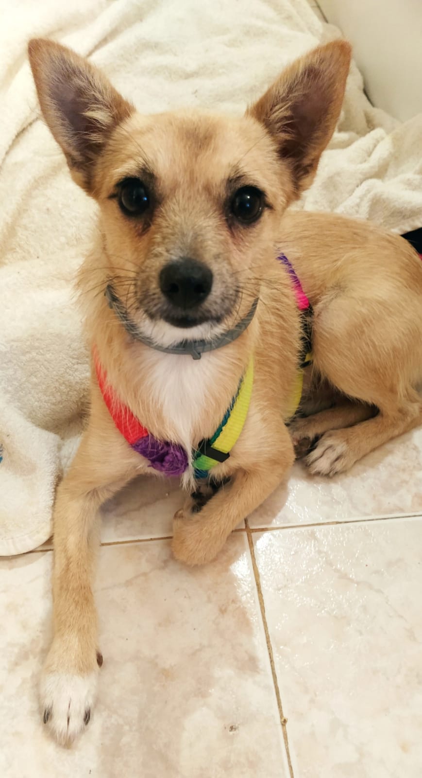 “Wenn niemand kommt, der mich rettet, dann such‘ ich mir halt jemanden aus, der das gefälligst zu erledigen hat.“ So oder so ähnlich dachte sich das Teo wohl, als er allein durch die Straßen von Linares lief und keiner sich um ihn kümmerte. Also setzte sich der entzückende Mini-Rüde vor ein Ärztehaus und wartete auf sympathische Menschen. Die kamen dann in Form einer tierlieben Dame und ihrer Tochter. Natürlich gingen die beiden Frauen davon aus, dass der gepflegte Junghund, der sich an ihre Fersen geheftet hatte, jemandem in der Straße gehörte, aber Teo machte keinerlei Anstalten, irgendwo in ein Haus zu laufen oder umzudrehen. Wegen des Verkehrs wollten Teos neue Freundinnen den kleinen Hund auch auf keinen Fall allein zurücklassen, also brachten sie ihn in die nächste Tierarztpraxis, um nach einem Chip schauen zu lassen. Diese Suche blieb erfolglos, und so schaltete der Veterinär die ArcoNatura ein. Unsere Freunde holten Teo dann auch kurz danach ab – und weil er wirklich klein und zart ist und eindeutig nicht lang auf der Straße unterwegs war, durfte er zu einer liebevollen Pflegefamilie ziehen.Teo ist von außen nur eine Handvoll Hund, aber von innen ist er ein Riese. In kürzester Zeit hat der witzige Mischling die Herzen aller Menschen erobert, die mit ihm zu tun haben. Vier Wochen warteten die Tierschützer in Linares ab, ob sich nicht doch noch ein verzweifelter Besitzer melden würde, der das goldige Kerlchen vermisst, aber da weder Polizei noch Tierheime irgendeine Nachfrage hatten, darf Teo jetzt in die Vermittlung.