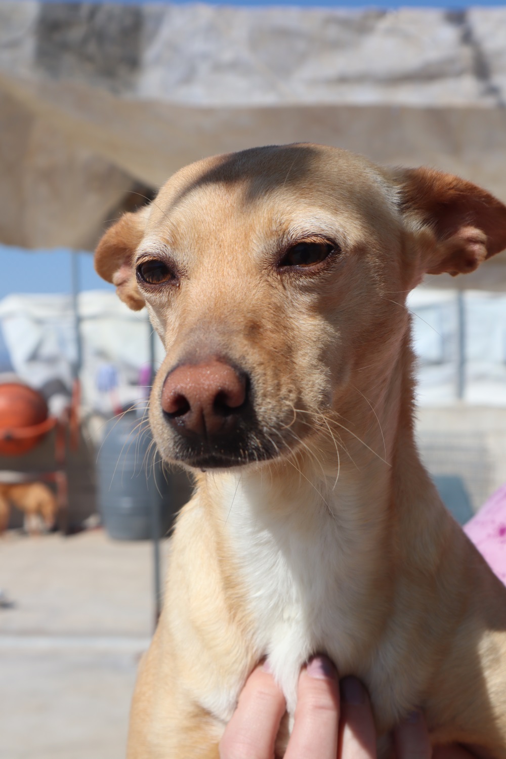 Eines Abend im Mai 2017 war das gesamte Team der ArcoNatura um das Tierheim herum unterwegs, um einen ausgebrochenen Hund zu suchen. Ein Gewitter war heran gezogen und einer der Schützlinge war vor Angst durch das Tor geschlüpft- eine Katastrophe für unsere spanischen Freunde. Im strömenden Regen wurde also dieser Hund gesucht, es stürmte, blitzte und donnerte- ja, und nachdem man den “Flüchtling” gesichert hatte, lief bei einem Donnerschlag eine weitere Hündin hinter einem Gebüsch hervor direkt in die Arme der Tierschützer…Tormenta musste in der Nähe des Tierheimes Schutz vor dem Unwetter gesucht haben und hatte ihre Chance auf ein trockenes Plätzchen wohl gerade noch rechtzeitig erkannt, bevor sich das Tor der ArcoNatura vor ihrer Nase schloss. Nun, natürlich wurde die zierliche Podenca in die Obhut des Shelters aufgenommen, trocken gelegt und mit Futer und Wasser versorgt. “Tormenta” bedeutet übersetzt “Sturm” und es könnte wohl keinen passenderen Namen für die in dieser stürmischen Nacht aufgegriffene Fledermaus geben.Natürlich wissen wir nichts über Tormentas Vorgeschichte. Vermutlich gehörte die elegante Lady einem Jäger, der entweder keine Verwendung mehr für sie hatte oder aus dessen Fängen sie entwischen konnte. Fakt ist, dass unsere rotnasige Prinzessin in letzter Zeit schon einiges richtig gemacht hat, was ihre Zukunftsplanung angeht und nun wollen wir ihr zum ganz großen Glück verhelfen.Die harmoniebedürftige Schmusebacke ist ihren Artgenossen gegenüber stets wohlgesonnen. Am liebsten entspannt sie sich in der Mittagshitze an der Seite einer ihrer Freundinnen (vermutlich wird hier der neueste Klatsch und Tratsch ausgetauscht) oder genießt die Ruhe im Schatten ihres Zwingers. Nach und nach beginnt sie jedoch auch, nach ausgiebiger Siesta, mit ihren neuen Freunden zu spielen und um die Wette zu laufen. Menschen gegenüber ist Tormenta zwar podencotypisch unaufdringlich, genießt jedoch sämtliche Streicheleinheiten in vollen Zügen.Sollten Sie ob der Rasse unserer schönen Rotnase zweifeln, können wir Ihnen nur versichern, dass ein Podenco nicht dem Bild entspricht, das so oft von ihm gezeichnet wird.Wir sprechen hier über geniale Familienhunde, die nur deshalb einen schlechten Ruf haben, weil vollkommen unverantwortliche Menschen in Spanien diese wunderbaren und treuen Begleiter fast ausschließlich zur Treibjagd einsetzen – weit weg von jedem Kontakt zu ihren Haltern. Ist ein Hund dann zu alt, verletzt oder aus anderen Gründen nicht tauglich, andere Tiere zu Tode zu hetzen, wird er kaltherzig ermordet, ausgesetzt oder weggeworfen wie kaputtes Spielzeug.Es stimmt, der Podenco ist ein lauffreudiger Jagdhund und es kann lange dauern, bis ein Vertreter dieser Rasse unbesorgt von der Leine gelassen werden kann, aber das ist kein Problem, das nur die Podencos trifft (zumal es wie bei jeder Rasse auch vom Charakter des einzelnen Hundes abhängt) und es gibt genug andere Möglichkeiten, dem Podenco genug Bewegung zu verschaffen. Hundesport, Toben im Garten, auch das Laufen am Fahrrad, Joggen und vieles andere sind hervorragende Alternativen. Auf dem Pro-Konto der pfiffigen Spanier finden sich hingegen viele Punkte, die weitaus interessanter sind. Der Podenco ist im Haus meist ein überausruhiger und ausgeglichener Zeitgenosse. Er neigt weder zum Kläffen noch zum übermäßigen Beschützen, er bewegt sich fast lautlos und genießt Streicheleinheiten über alles. Als souveräne Arbeitshunde lernen die meisten auch sehr schnell, wie man problemlos alleine bleibt, ohne vor Langeweile die Wohnungseinrichtung zu verschönern oder die Schuhe der Familie mit zusätzlichen Luftlöchern zu versehen.Geben Sie sich einen Ruck- unsere vornehme Lady wird Ihnen beweisen, dass in einem Podenco sehr viel mehr steckt, als ein Jäger und Hetzer. Vom Sofa- Belagerer über Langschläfer und Mäusepopulationsbeauftragten- die fledermausohrigen Rotnasen haben viele Qualitäten, die es zu entdecken lohnt! https://www.youtube.com/watch?v=077dibIJRAQhttps://www.youtube.com/watch?v=m2Bn_P6ibsQ