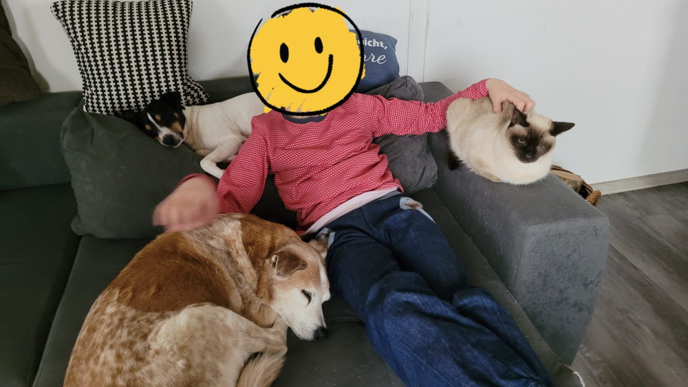 Dieser Plan geht voll und ganz auf, denn Trish konnte nun in aller Ruhe herausfinden, wie es sich in einer kleinen Hundegruppe in einem Haus so lebt. Inzwischen zeigt sich, dass er weder schüchtern noch ängstlich ist, sondern lieber erst neugierig beobachtet, bevor er selbst aktiv wird und sich freut, wenn er feststellt, dass alle Sorge unbegründet war. Spaziergänge sind längst an der Tagesordnung und werden mit Begeisterung ausgeführt, Autofahren war nie ein Problem und natürlich kommt ein Charmeur wie unser „Zwergenpups“ (ja, Pflegestellen finden immer originelle Namen für Pflegehunde) bestens mit seinen vierbeinigen Kollegen klar. Spielzeug war für den ca. zwei Jahre jungen (Stand Oktober 2023) Spatz natürlich etwas völlig Neues- clever, wie er ist, hat er die anderen Hunde dabei beobachtet, was sie mit Stofftieren und Bällen anstellen, dann selbst einmal probiert und inzwischen ist er ein Vollprofi in Sachen „Spiel und Spaß“. Trotzdem ist Trish kein aufgeregter oder anstrengender Hund, ganz im Gegenteil: er ist für sein Alter und seine Rasse erstaunlich ruhig und genießt Kuschelstunden über alle Maßen. Überhaupt sucht er die Nähe zu seinen Menschen und lässt sich auch auf der Couch animieren, Quatsch zu machen oder stundenlang in der Armbeuge zu schlafen. Insgesamt ist Trish ein absolut liebenswerter, fröhlicher und rundum positiv eingestellter, kleiner Hund, der sicherlich auch als Einzelhund mit regelmäßigem Kontakt zu anderen Hunden (auch Katzen sind in seiner Pflegestelle kein Problem) glücklich wäre. Da Trish durch einen Zufallsbefund positiv auf Leishmaniose getestet wurde, bekommt er täglich Allopurinol- er nimmt die Tabletten problemlos und die Kosten hierfür liegen im Centbereich. Ein Frohnatur wie unser Trish würde sein Glück sowohl bei rüstigen Rentnern finden können, als auch bei einer Familie mit Kindern- sofern genug Humor vorhanden ist, über zerstörte Stofftiere mit einem Lachen hinwegzusehen. Da Trish seinen Menschen unbedingt gefallen will und richtig schlau ist, wird auch seine Erziehung eher Spaß als Verpflichtung werden.