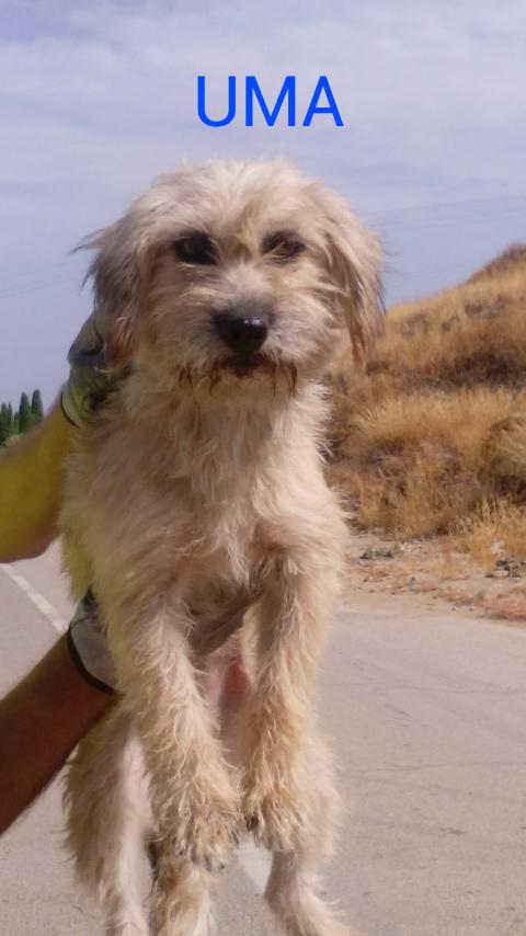 Uma lief allein auf der Autobahn herum, als sie von den staatlichen Hundefängern erwischt wurde. Sicherlich ist das besser als der Tod, aber auch nur ein bisschen, denn was in der Perrera auf die traurigen Seelen wartet, wirft dann tatsächlich die Frage auf, welches Schicksal weniger Schmerz und Angst verursacht. Und am Ende wartet eben meist doch der Stahltisch, auf dem die letzte Spritze verabreicht wird… Uma hatte Glück, denn ab und an kommen unsere Freunde von der ArcoNatura und gehen tapfer durch die dunklen Reihen des öffentlichen Zwingers, stellen sich der unfassbar schweren Aufgabe, zu entscheiden, wer die Hölle hinter sich lassen darf und wer zurückbleiben muss. Und jedes Mal werden Tränen fließen, angesichts derer, die weiterhin traurig hinter den Gittern winseln müssen, ohne die Sonne zu sehen, ohne ein gutes Wort zu hören, oft verletzt und krank – und doch lohnt der Einsatz, denn jedes Leben zählt. Uma war bei ihrer Rettung sehr ängstlich und hatte wenig Vertrauen, doch wer wollte ihr das verdenken? Arca-Nasen-Besitzer wissen, die Menschen in Linares haben schon wahre Wunder gewirkt, und auch bei dieser süßen Wuschelmaus blieben die Bemühungen unserer Partner nicht ohne Erfolg. Schon nach vier Wochen ist Uma aufgetaut und freut sich immer, wenn die Zweibeiner in die Einrichtung kommen. Fröhlich begrüßt sie die Besucher und hat sogar gegenüber den ihr wohlbekannten Leuten einige lustige Streiche im Petto. Ganz fremden Menschen begegnet sie immer noch mit Zurückhaltung, aber auch hier ist deutlich festzustellen, dass die Anlaufzeit der Zuckerschnute täglich kürzer wird. Uma hat gerade ihren vierten Geburtstag gefeiert (Stand 10/2015) und ist somit im allerbesten Alter. Sie hat die Pubertät und deren Klippen weit hinter sich gelassen, ist aber ebenso weit davon entfernt, alt zu sein. Unsere Prinzessin ist klein und kompakt, leicht zu führen, nimmt kaum Platz auf der Couch und im Auto weg und passt sogar bequem ans Fußende des Betts. Ein strahlendes Lächeln bringt Uma als Bonus obendrein mit und – darauf geben wir eine Garantie – letzteres wirkt ansteckend!