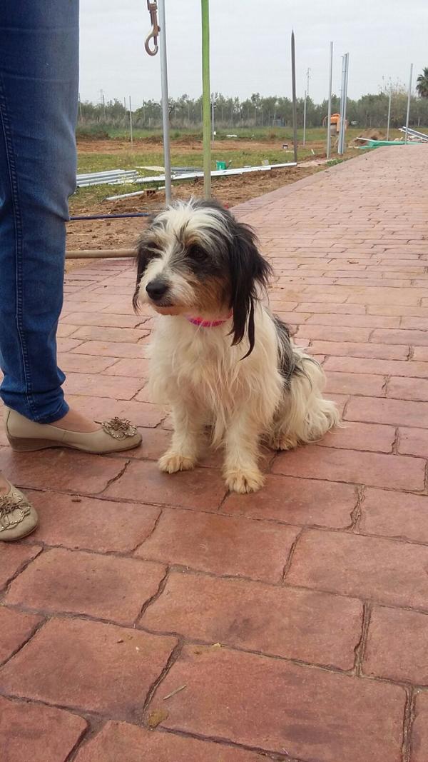 Uva ist ein klassischer Wuschel-Mix. Zu raten, welche Rassen sich in der hübschen Mini-Ausgabe verstecken, wäre wirklich vermessen, aber auf ein kleines Merkmal möchte ich doch hinweisen: Uva hat goldene Augenbrauen (und das könnte durchaus auf Beteiligung eines wie auch immer gearteten Terriers schließen lassen). In ihrem Viertel war Uva schon eine kleine Berühmtheit. Tag für Tag wanderte sie die gleichen Straßen entlang, ihr Welpe immer direkt hinter ihr. Zahlreiche Leute gaben dem freundlichen Duo hin und wieder eine Futterspende und immer mehr Menschen sorgten sich darum, ob Mama und Kind eine Chance hätten, den Winter in Sevilla zu überleben, ob sie nicht doch den Hundefängern zum Opfer fallen würden oder irgendwann unter einem Auto liegen…Zum Glück hörten auch unsere Freunde der Arca von dem Pärchen und nahmen die beiden umgehend in ihre Obhut. Uva zog in die Tierpension, ihr Baby macht Aufpäppelferien in einer Pflegefamilie. Uva ist erst ein Jahr alt (Stand 01/2016) und hat schon ziemlich alles erlebt, was man einem so jungen Hundemädchen nicht wünscht. Das harte Leben auf der Straße, eine viel zu frühe Trächtigkeit und vermutlich musste sie zusehen, wie ihre anderen Welpen nur einige Tage überlebten. Es wird Zeit, dass die extrem menschenfreundliche und verspielte Prinzessin das Dasein von einer anderen Seite kennenlernt. Kuschlige Körbchen, Fernsehabende auf der Couch, Toben auf grünen Wiesen oder im Schnee, in dem Wissen, dass sie wieder nach Hause kommt, dass Futter auf sie wartet, dass sie angstfrei schlafen wird  – und dass sie geliebt und beschützt wird.Uva ist bescheiden, aber überaus liebenswert. Sie wünscht sich eine nette, humorvolle und streichelerfahrene Familie für ein langes, lustiges und glückliches Leben. Das sollte doch zu schaffen sein?!