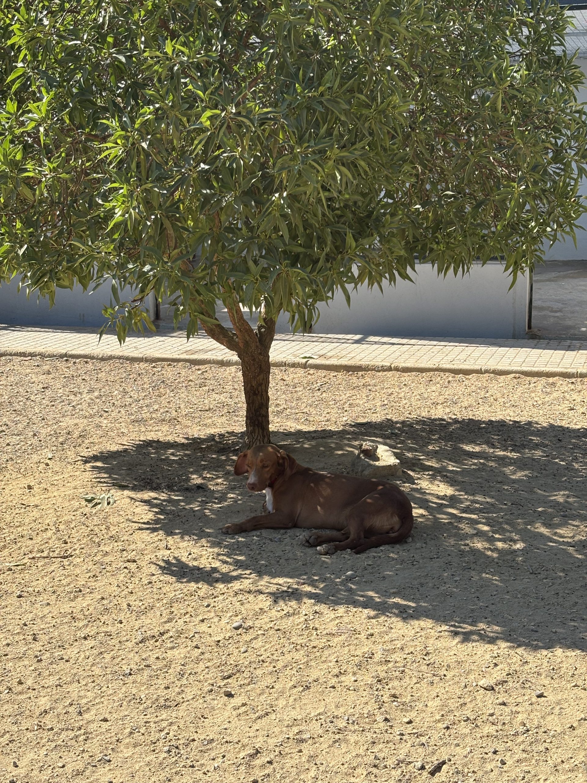 Die welterfahrene Hündin wanderte auf kurzen Beinchen allein durch ein Dorf in der Nähe von Cadiz. Zum Glück traf sie dort auf eine tierliebe Dame, die alles versuchte, um die einsame Hundedame vor Verkehr, Tierquälern und Hundefängern zu retten. Anfangs fütterte sie Vicky, später durfte die dankbare Hündin bei schlechtem Wetter auch bei ihr übernachten, hin und wieder sah man die beiden Freundinnen gemeinsam spazieren gehen. Für die zwei Damen wäre nichts schöner gewesen, als zusammenbleiben zu dürfen, aber Vickys Retterin ist berufstätig und kann keine Hunde halten, und so kam Vicky ins kleine Refugio Kimba, in die Obhut unserer Partner.