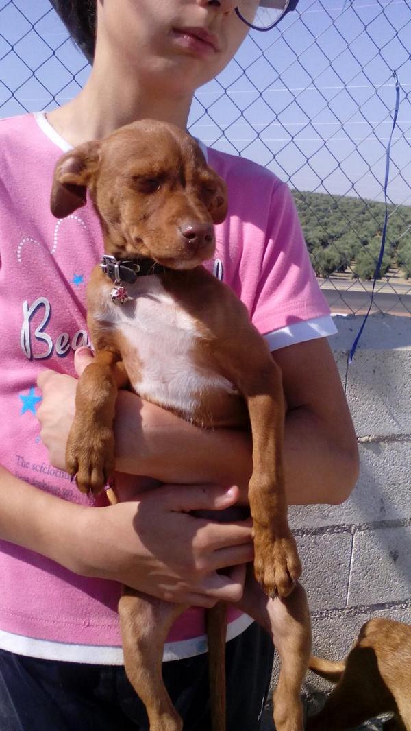 Rote Nase, rotes Fell, weiße Brust, Fledermausohren, rosa Welpenbauch – und das im Doppelpack! Tinky und Winky gehören zu den wenigen Baby-Podencos, die in unserer Vermittlung landen. Oft kommen die Vertreter ihrer Rasse erst nach einem schrecklichen ersten Jahr als Jagdhund oder später verletzt und nicht mehr gebraucht in die Tierheime und Perreras – wenn sie nicht schon vorher auf oft grausame Art von ihren Besitzern getötet wurden. Wahrscheinlich stammen die beiden oberniedlichen Rüden aber auch von einem dieser unsäglichen Killer und wurden einfach entsorgt, weil sie nicht zur richtigen Zeit geboren wurden oder die Mutter nicht genug Milch für alle Welpen hatte. Dieser Abschaum der Menschheit braucht auch oft genug gar keinen Grund, um Hunde zu quälen, zu verletzen, auszusetzen oder eben einfach abzuschlachten.Tinky und Winky hatten sich Ende Juni unter einem Auto vor der glühend heißen Sonne versteckt. Zum Glück entdeckte der Fahrer die beiden ausgetrockneten, ängstlichen und verwirrten Babys, bevor er losfuhr. Generell hatten Tinky und Winky ein gutes Händchen in der Wahl ihres Unterstands, denn ihr Finder ist auch ein Freund der ArcoNatura, und so ließ er die beiden Knutschkugeln selbstverständlich nicht zurück, sondern packte sie ins Auto, versorgte sie sofort mit Wasser und Futter und brachte sie in die Obhut der Tierschützer. Verwirrt, traurig, dehydriert und ängstlich? Nein, diese Adjektive treffen für unsere beiden Weltentdecker wirklich nicht mehr zu. Tinky und Winky sind inzwischen knapp vier Monate alt (Stand 08/2015) und zu äußerst energiegeladenen, verspielten und neugierigen Gesellen mutiert. Fröhlich und jederzeit auch zum Kuscheln und Schmusen bereit nehmen sie ihre Umwelt in Beschlag. Leider ist natürlich viel zu wenig Zeit für Babys im Tierheim und weil man vorsichtig sein muss, bis der Impfschutz sicher wirkt, dürfen die lustigen Duracell-Hasen auch nicht im Rudel spielen. Deswegen brauchen Tinky und Winky jetzt ganz bald richtige Familien, mit viel Humor und Zeit und Liebe und natürlich mit Erfahrung im Umgang mit quietschebunten Bällen.