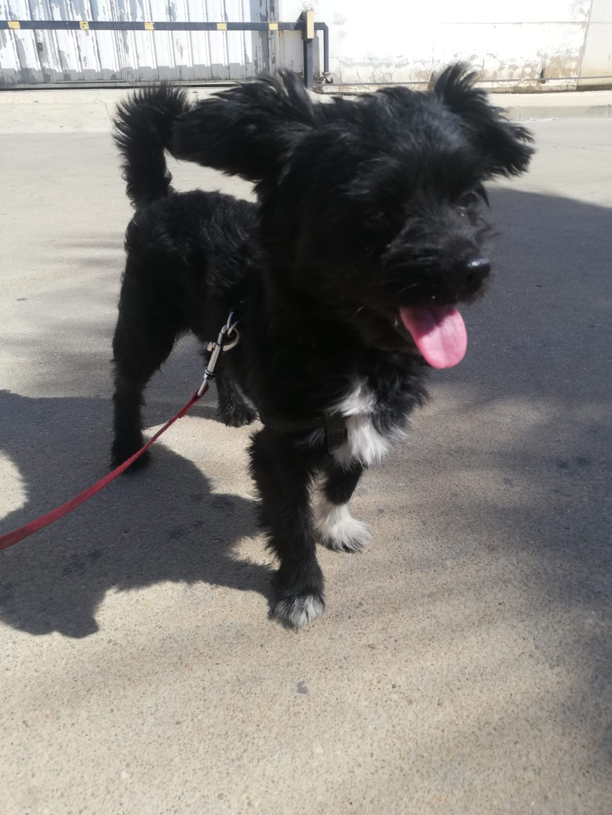 Ein kleiner Frackträger verzaubert seit einigen Wochen die Herzen der Tierschützer von Dolmen Animal. Yako – so heißt der entzückende zweijährige (Stand 09/2020) Pudelmischling – stand eines Tages vor der Preperrera, angebunden und allein gelassen. Mit seinen nur 35cm Schulterhöhe und gerade mal sieben Kilogramm Lebendgewicht, war die Zeit, die Yako vor dem Tierheim warten musste, sicher die Hölle. Stellen Sie sich vor, Sie werden irgendwo angekettet, Sie sehen nur eine Mauer und hören die ganze Zeit Geräusche, die Sie mit Todesgefahren verbinden. Sie können nicht weglaufen, Sie wissen nicht, wann und ob der Angreifer, der ja in der Nähe sein muss, weil Sie ihn hören können, zuschlagen wird … Genau das erlebte der arme Rüde über Stunden, und es verwundert nicht, dass er am Anfang wirklich panisch war, als die Tierschützer zum Füttern auftauchten und ihn aus seiner schrecklichen Situation befreiten. Yako ist so klein und war so verunsichert, dass eine der freiwilligen Helferinnen von Dolmen den kleinen Fellball mit nach Hause nahm. Dort kann Yako jetzt in Geborgenheit warten, bis sich die richtige Familie für ihn findet.