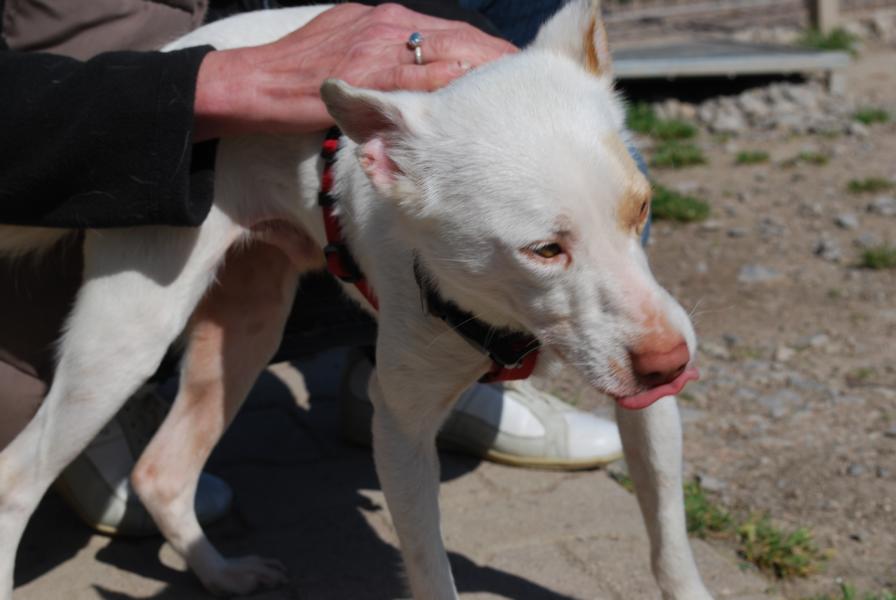 Gescheckte Ohren auf einem weißen Hund mit einer hübschen roten Zeichnung um eins der drolligen, stets aufmerksamen grünlichen Augen, immer ein Lächeln auf dem Gesicht und jederzeit bereit, sich ins wilde Spiel zu stürzen – das ist Yako. Der erst wenige Monate alte halbwüchsige Nachwuchsathlet strolchte allein durch die Straßen des Stadtzentrums von Linares. Sicherlich sind im Zentrum die Chancen auf Futter viel größer als auf dem Land, viele Restaurants und Supermärkte entsorgen ihre Abfälle in leicht zu öffnenden Mülltonnen, die für ein helles Köpfchen wie Yako kein Hindernis sind, aber auch die Gefahr von den allgegenwärtigen Hundefängern erwischt zu werden, steigt um ein Vielfaches. Yako hatte das Glück, von freiwilligen Helfern der Arconatura gefunden zu werden, und da der nette Mischling so zutraulich und dankbar ist, folgte er den freundlichen Zweibeinern auch problemlos ins Auto und damit auch an den Startpunkt für ein neues Leben. Der hübsche energiegeladene Teenager wohnt nun bei einer liebevollen Pflegefamilie, wo er durch seine Ausdauer, Intelligenz und sportliche Spielfreude begeistert. Ohne aufdringlich zu sein, wartet der fröhliche Junge immer darauf, wann jemand Zeit findet, mit ihm zu toben oder seinen Ball zu werfen. Auch die Artgenossen, mit denen er sich seinen derzeitigen Aufenthaltsort teilt, schätzen Yako als Spielkameraden und fairen Sportlern, mit dem man sich im Ringen, Rennen und Hüpfen messen kann. Yako ist noch kein Jahr alt und musste schon das Leben auf der Straße kosten, jetzt erfährt er gerade, wie es sein kann, wenn man bei einer netten Familie in Geborgenheit und mit viel Spaß wohnt. Das will er nie wieder hergeben, deswegen brauchen wir für den lustigen Springinsfeld ein richtiges und dauerständiges Zuhause. Dort wünscht sich Yako aktive und sportliche Zweibeiner, die sich mit ihm beschäftigen und ihn geistig wie körperlich fördern und fordern. Auch ein ebenso aufgeweckter Zweithund zum Toben und Spielen würde unser Energiebündel sicher begeistern. Yako kann es kaum noch abwarten zu sehen, welche Farbe, Sprungkraft und Größe sein erster eigener Ball haben wird… wissen Sie vielleicht schon mehr als er und wir?