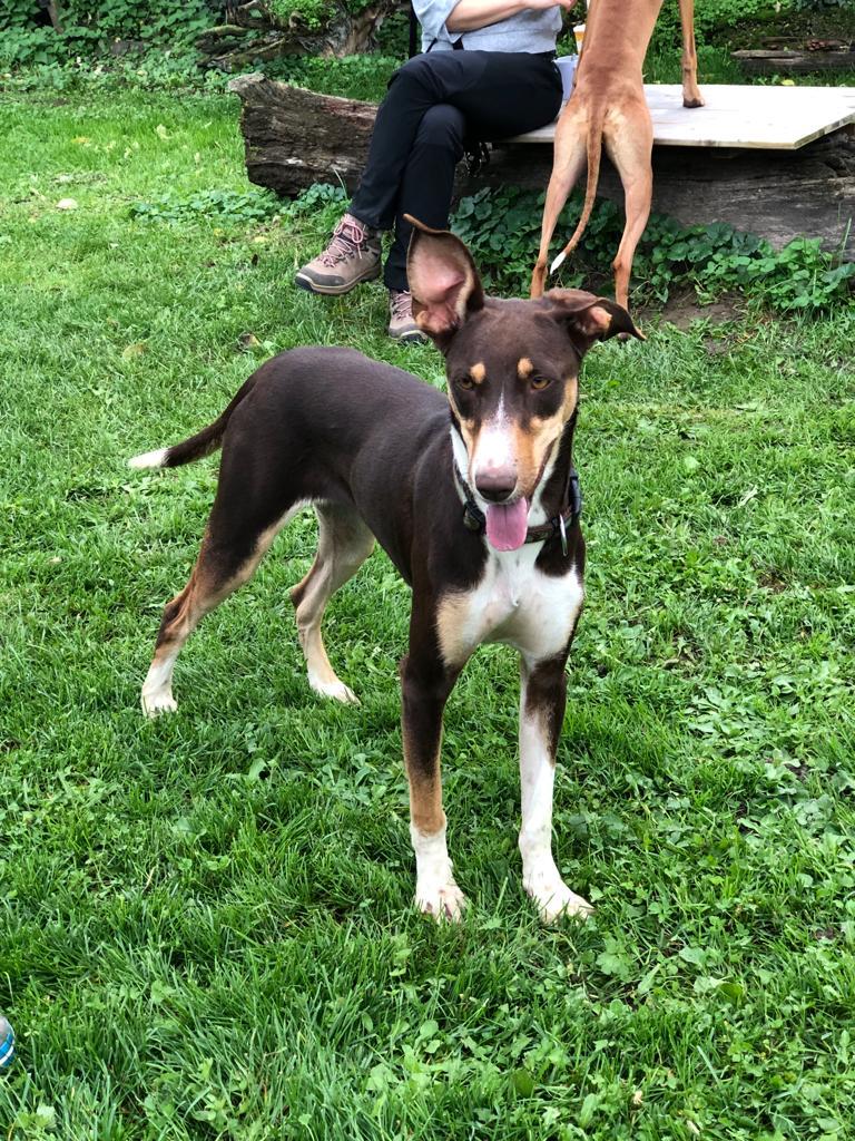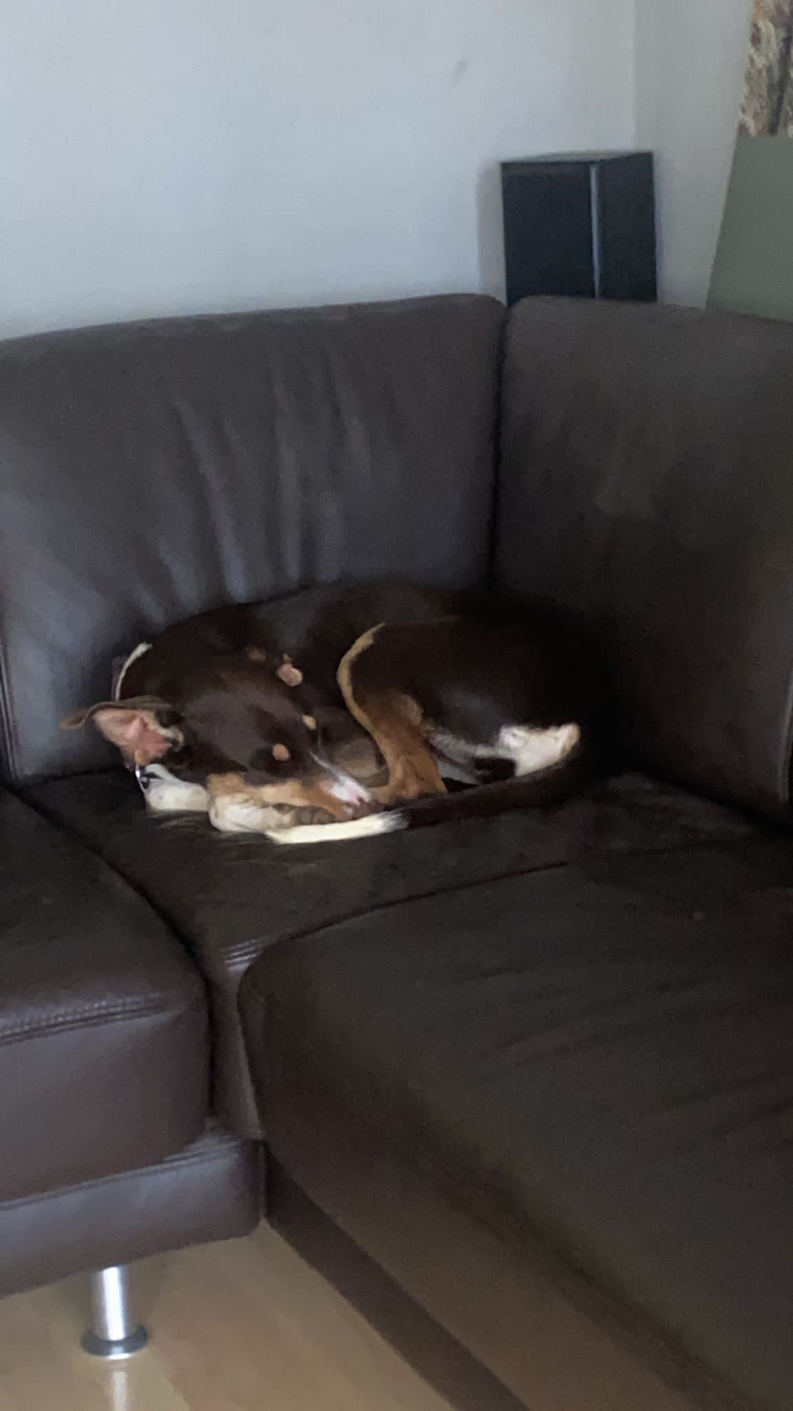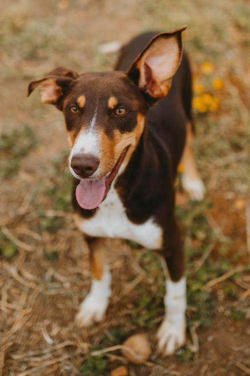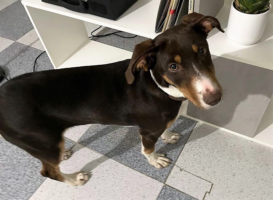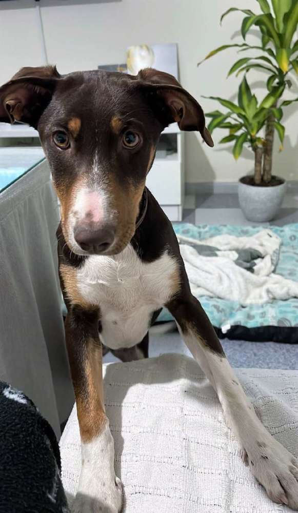 Zafira hat wie erwähnt viele Gene eines Podencos, aber nicht die irgendeines – die bildhübsche Prinzessin ist nämlich ein Orito-Mix. Diese seltene Podenco-Art galt schon einmal als ausgestorben. Sie zeichnet sich durch ihre Farbe aus – schwarz oder schokoladenbraun mit goldenen Applikationen. Daher auch ihr Name, denn Oro bedeutet Gold.